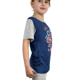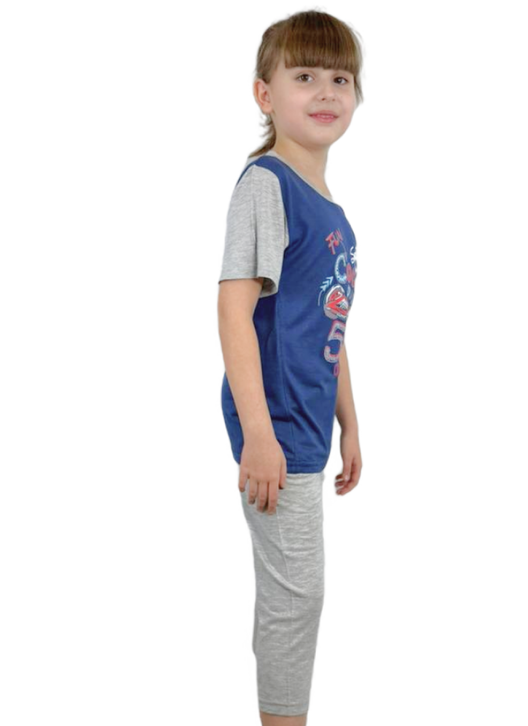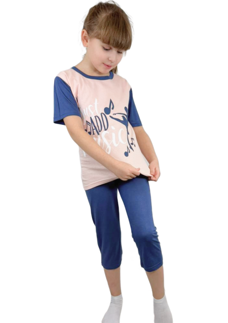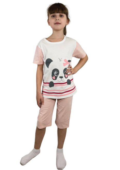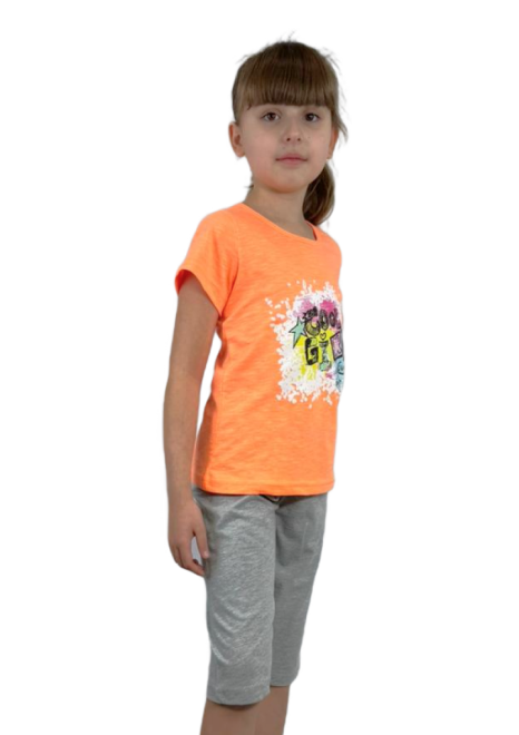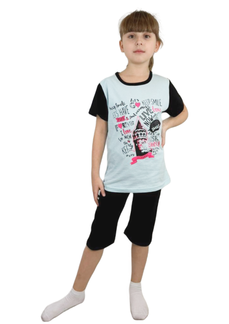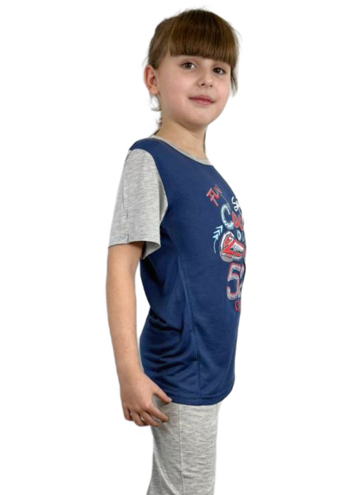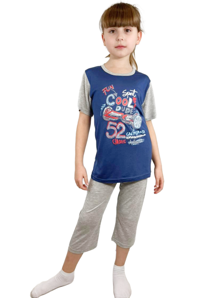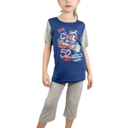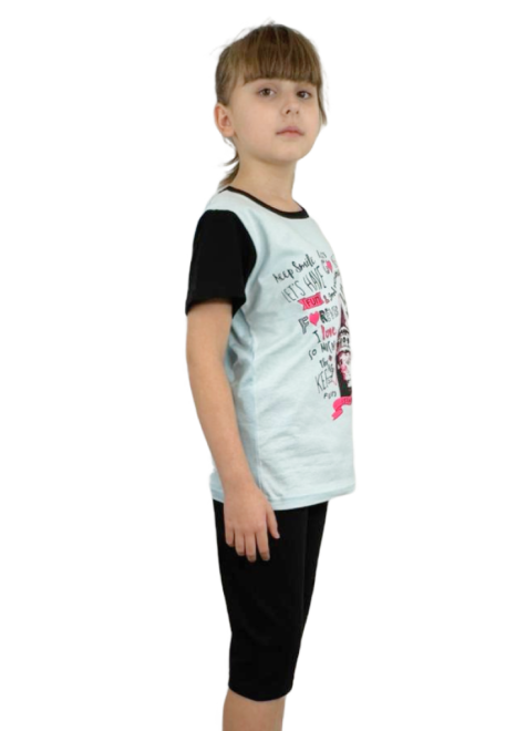 Детский домашний комплект состоит из футболки и удлиненных шорт на резинке