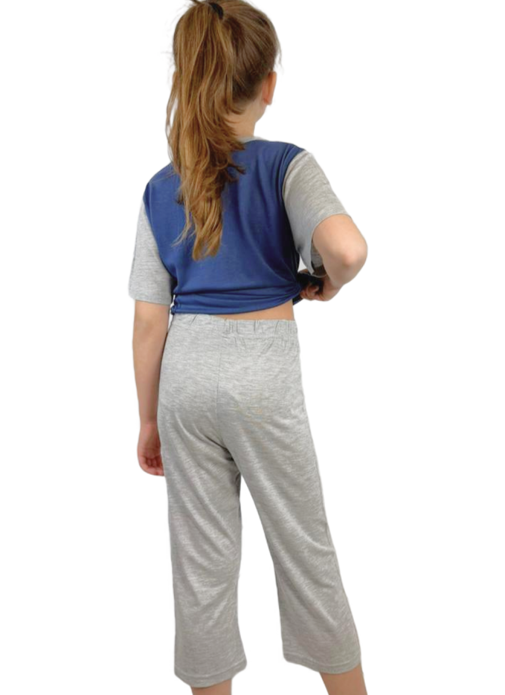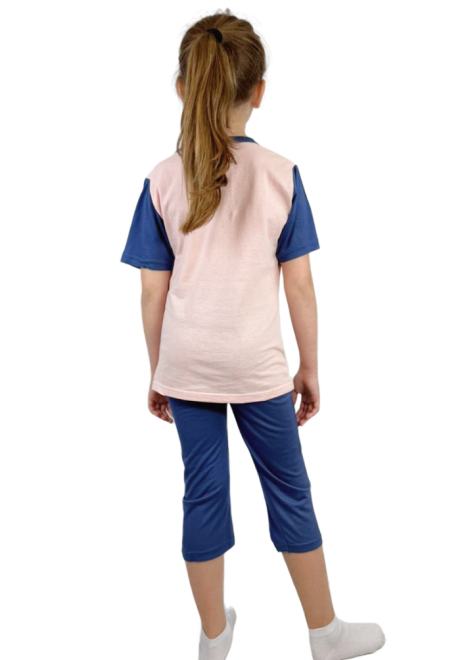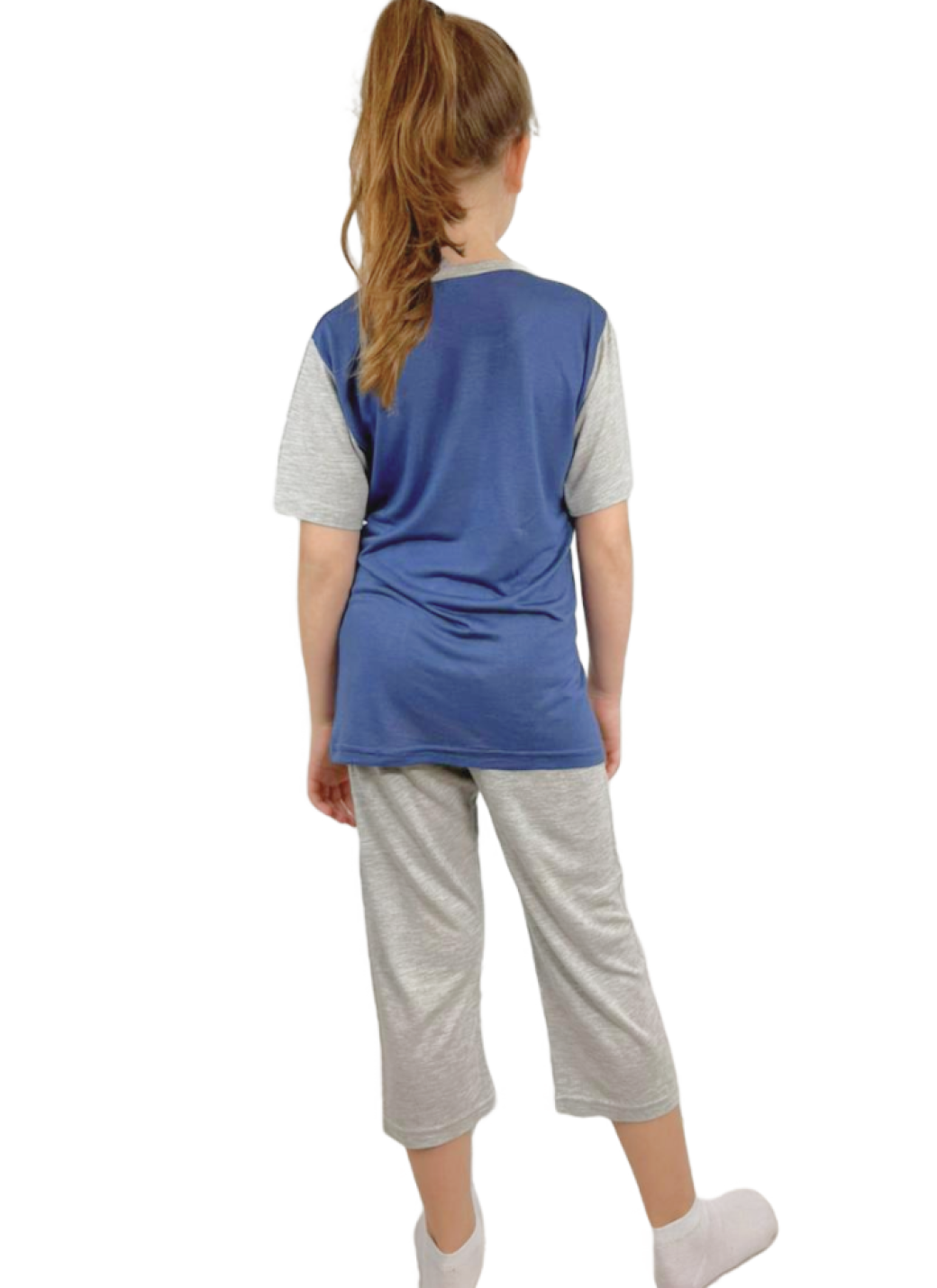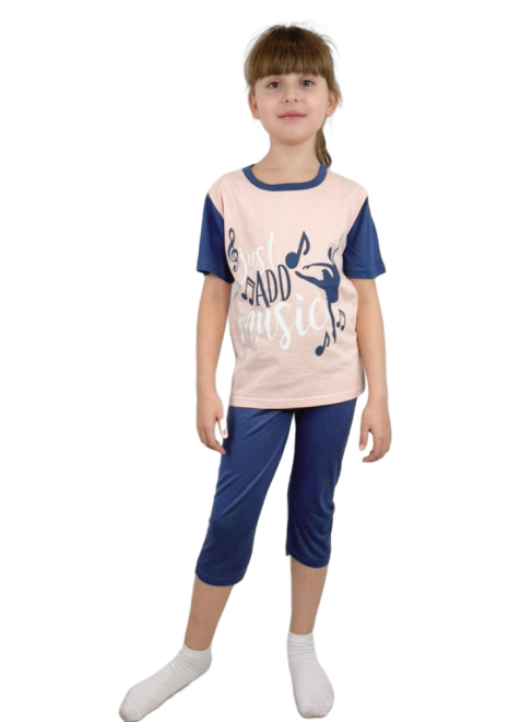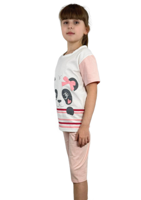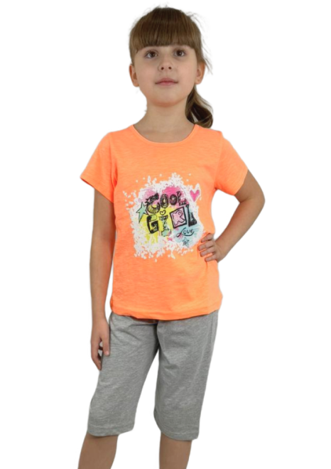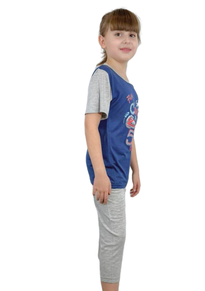 Детский домашний комплект состоит из футболки и удлиненных шорт на резинке