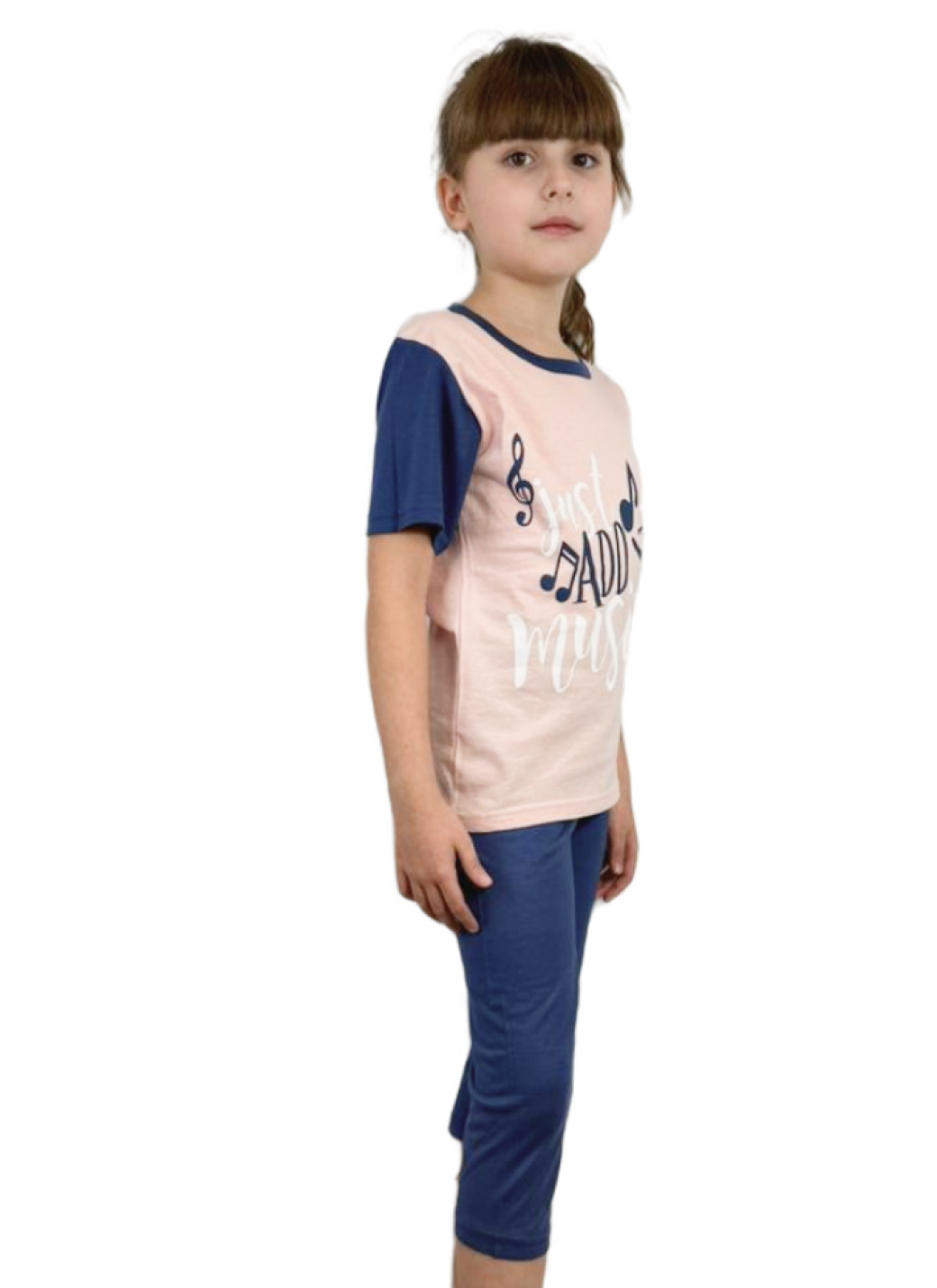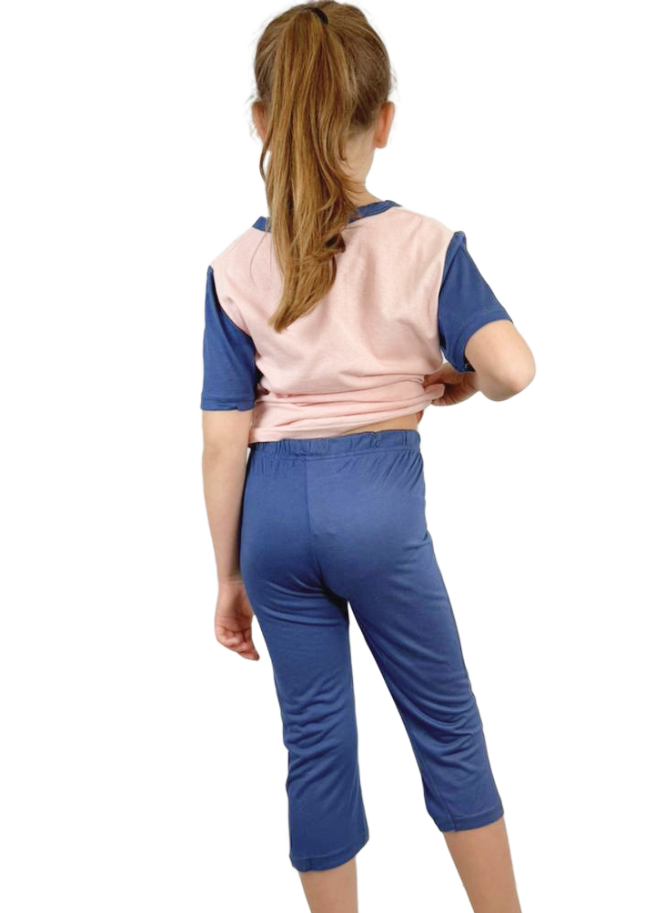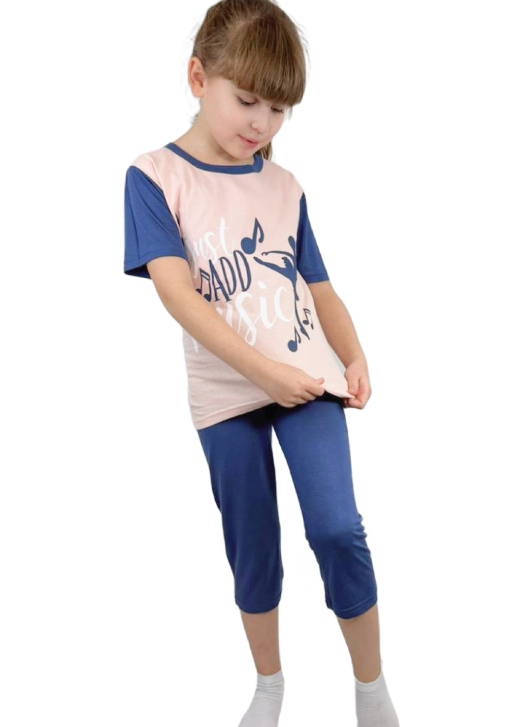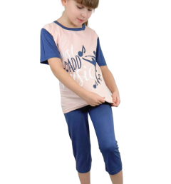 Детский домашний комплект состоит из футболки и удлиненных шорт на резинке