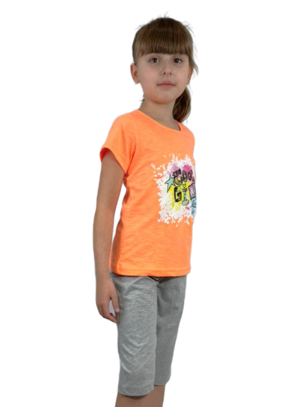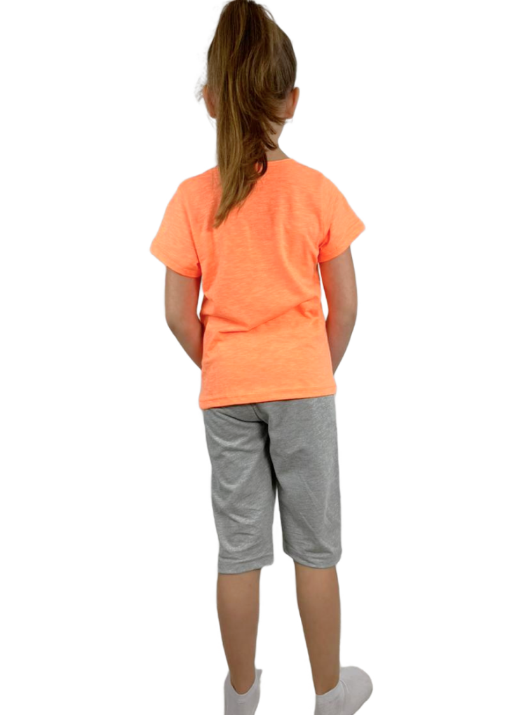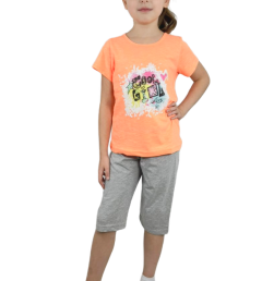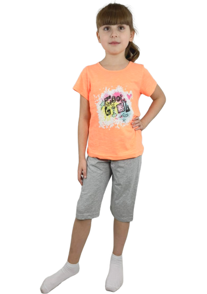 Состоит из футболки с коротким рукавом и удлиненных шорт.