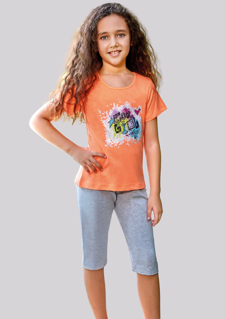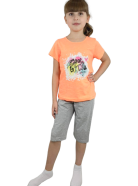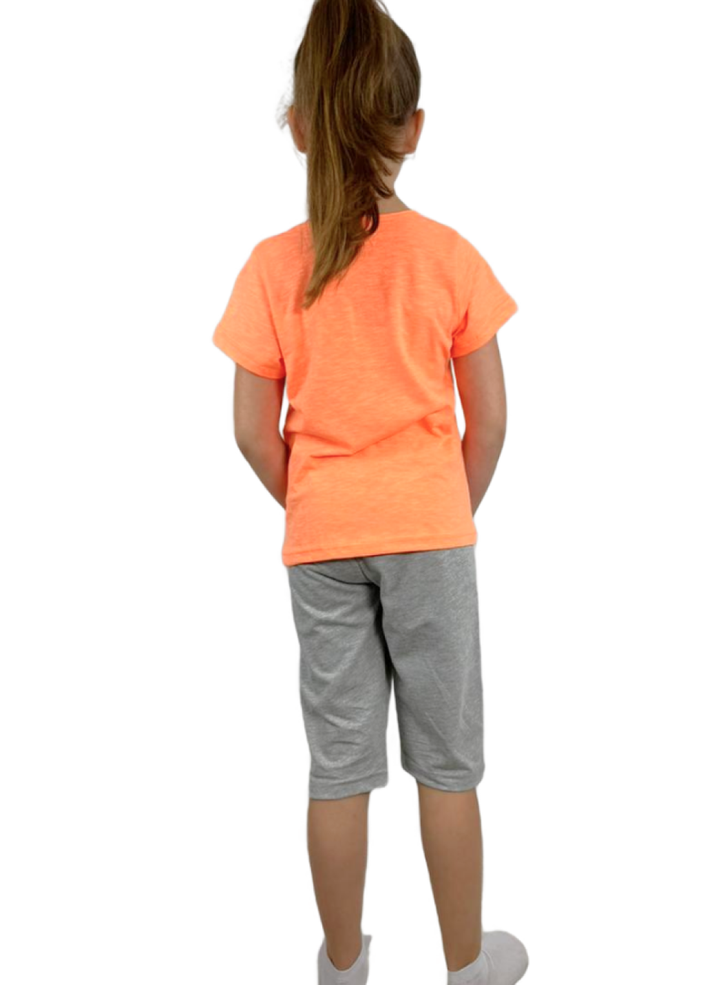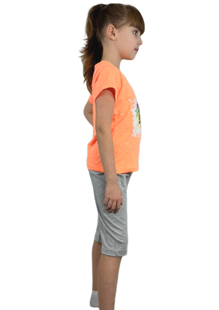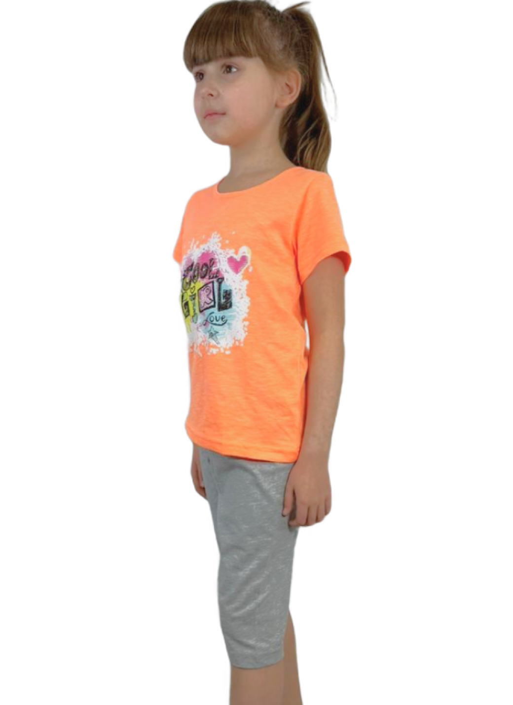 Состоит из футболки с коротким рукавом и удлиненных шорт.