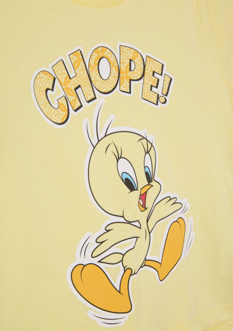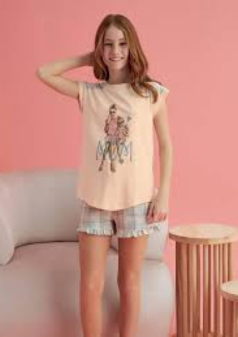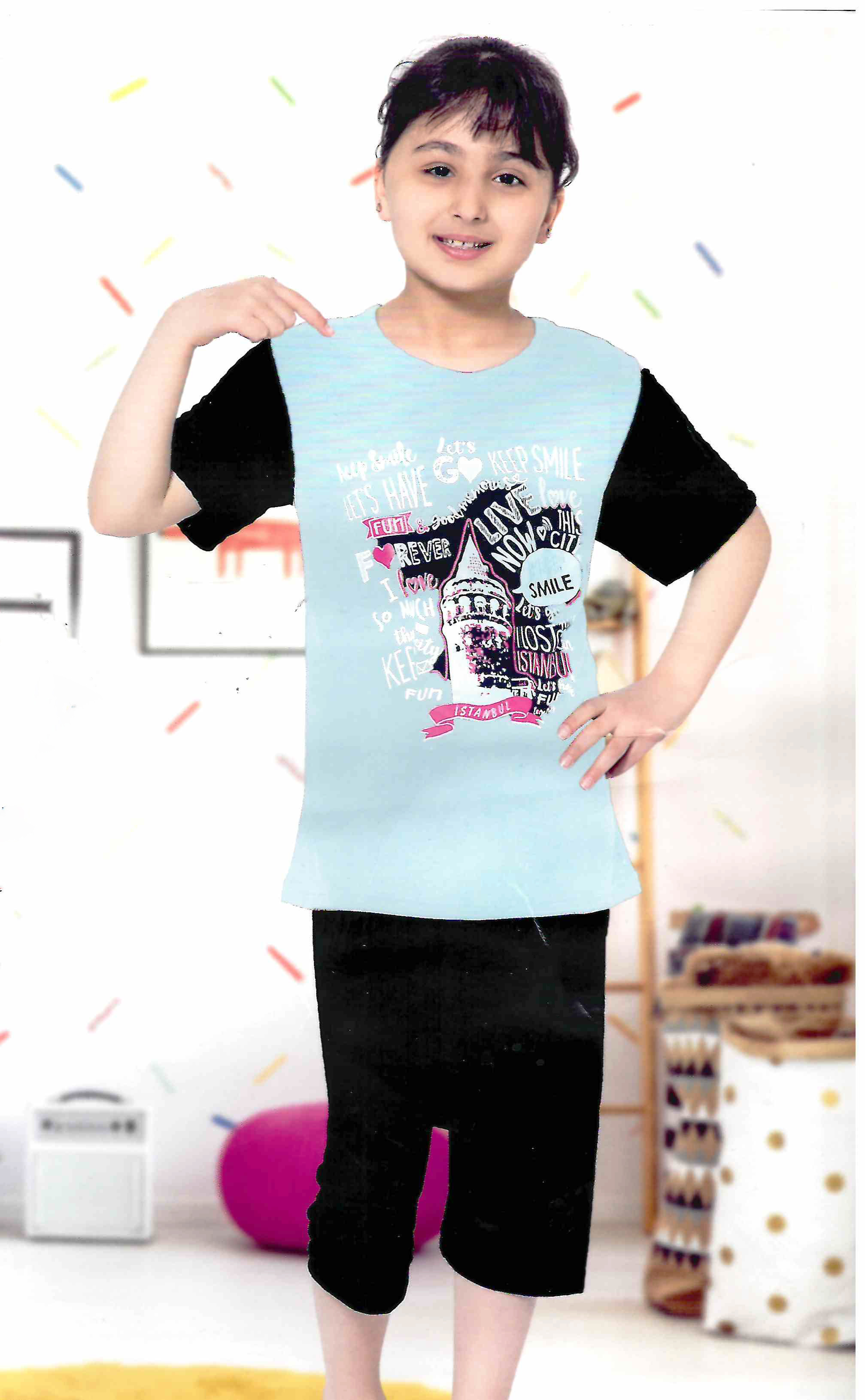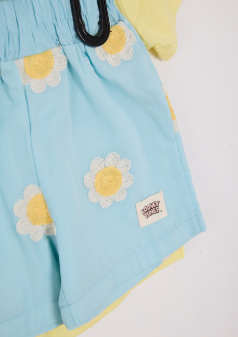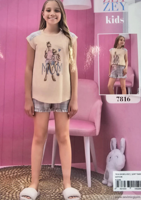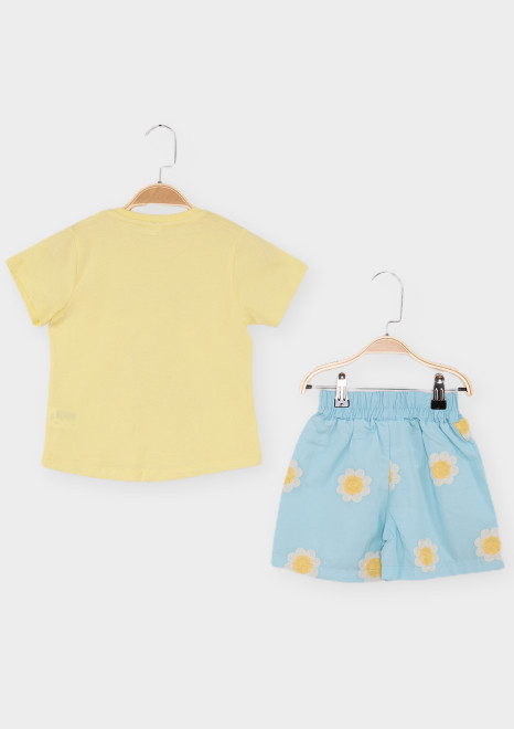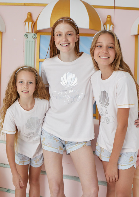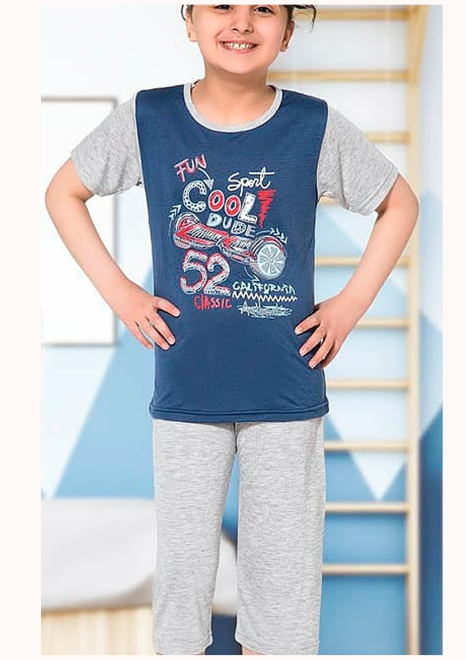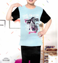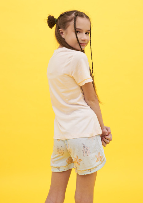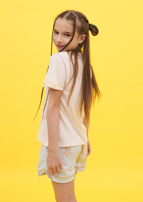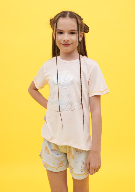 Детский домашний комплект состоит из футболки и удлиненных шорт на резинке