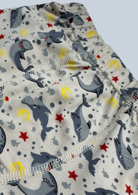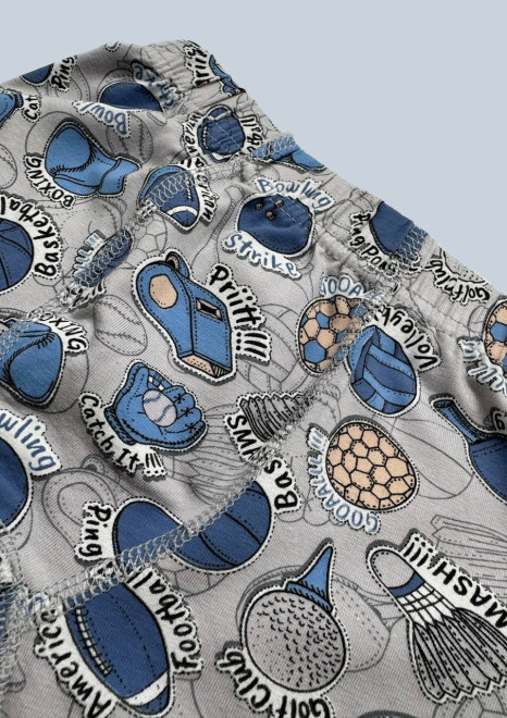 Комплект состоит из футболки с коротким рукавом и штанов прямого кроя.