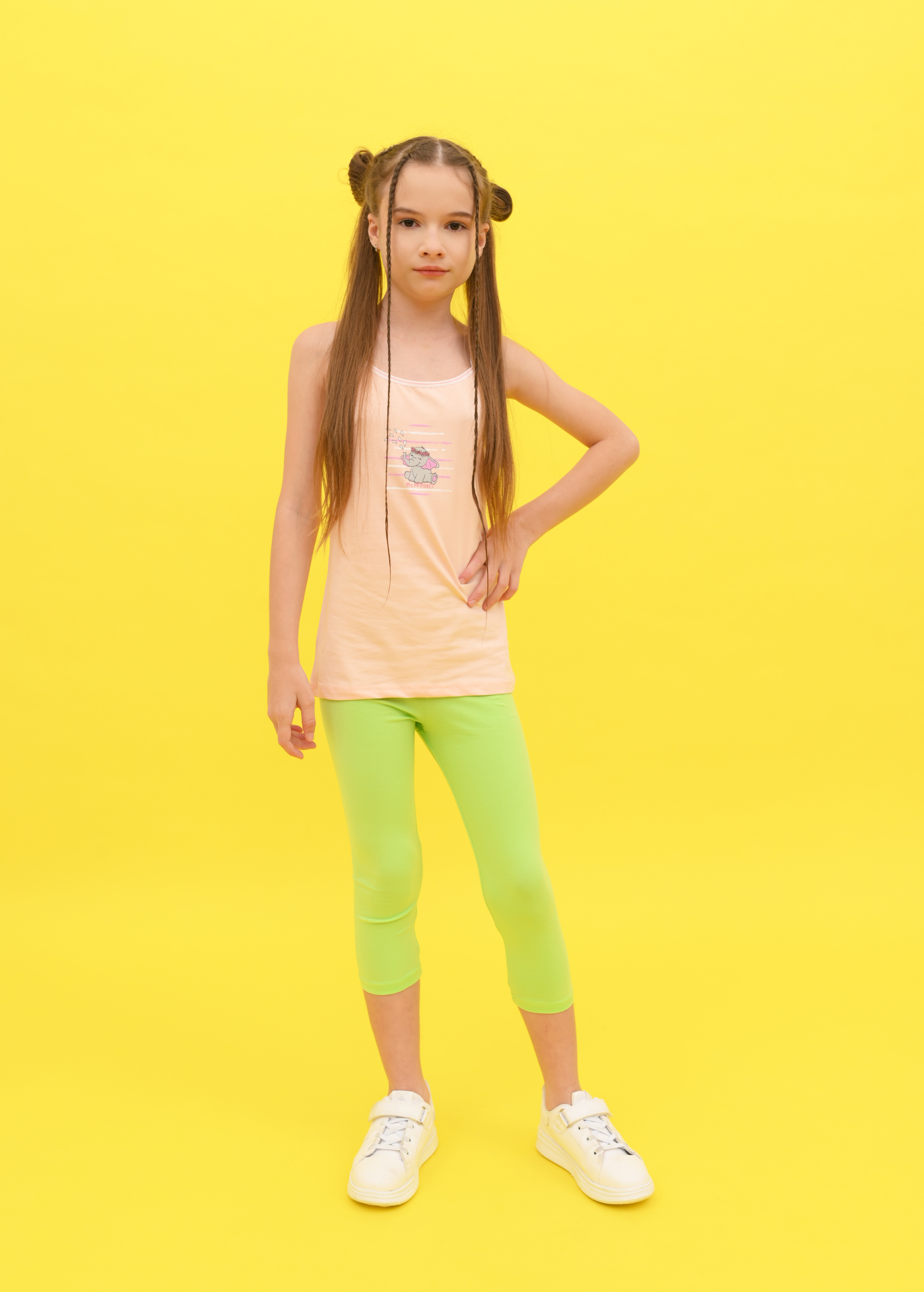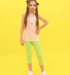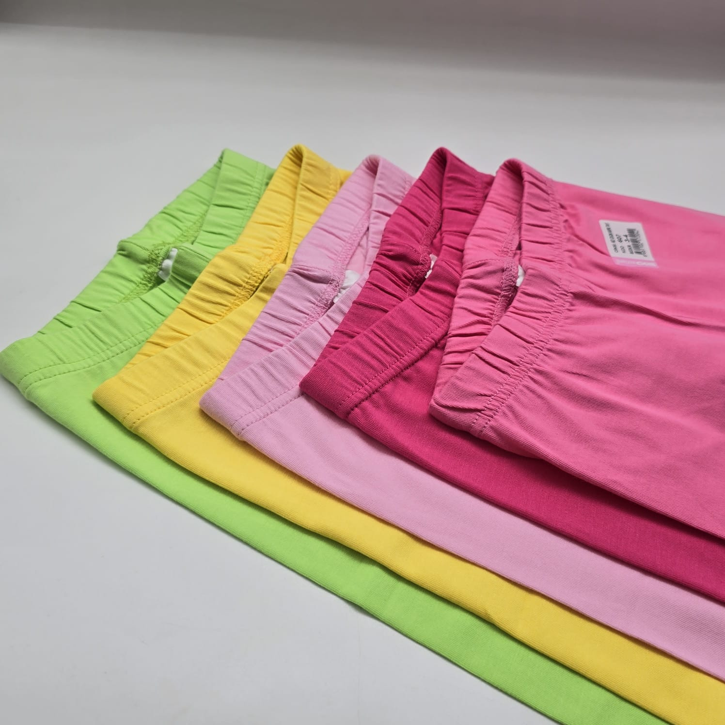 Укороченные леггинсы - бриджи для девочек. Идеально подойдут для повседневной носки , для прогулок и в детский сад. Цвета в ассортименте: салатовые, желтые, светло-розовые, малиновые, розовые. При заказе, в комментарии можете указать желаемый цвет (предоставим, если будут в наличии)