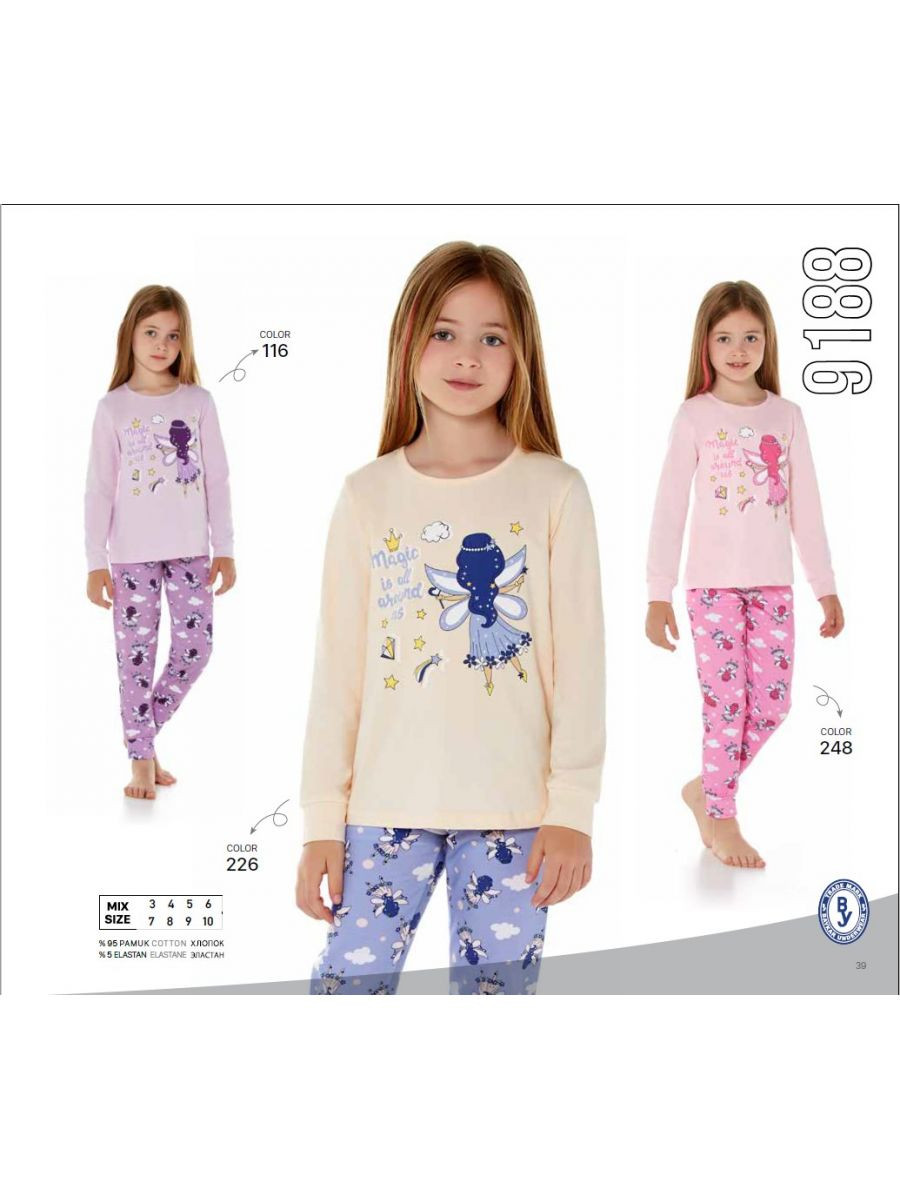Стильная, уютная детская пижама, приятных оттенков без утеплителя и начеса. Пижама для девочки подойдёт как домашняя одежда, для сна и отдыха. Комплект состоит из кофты (лонгслив) с длинным рукавом и домашних штанов свободного кроя на манжете, выполненных из мягкого трикотажа.