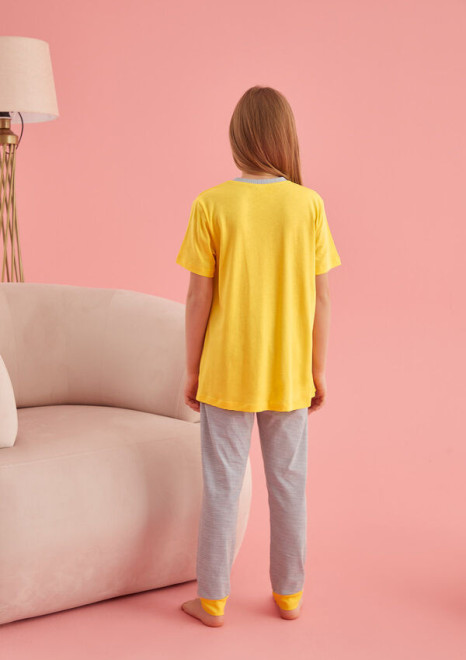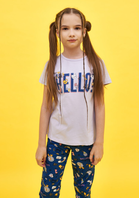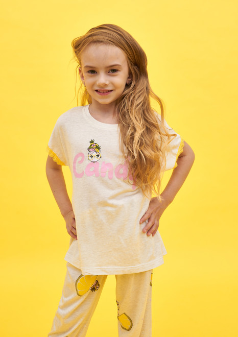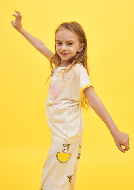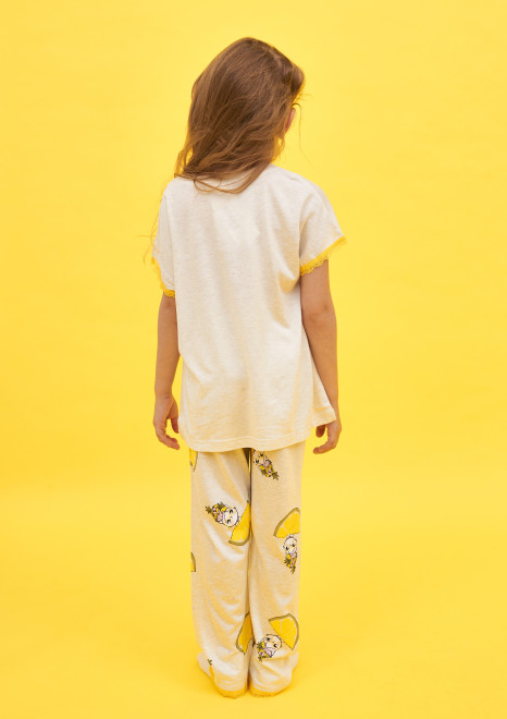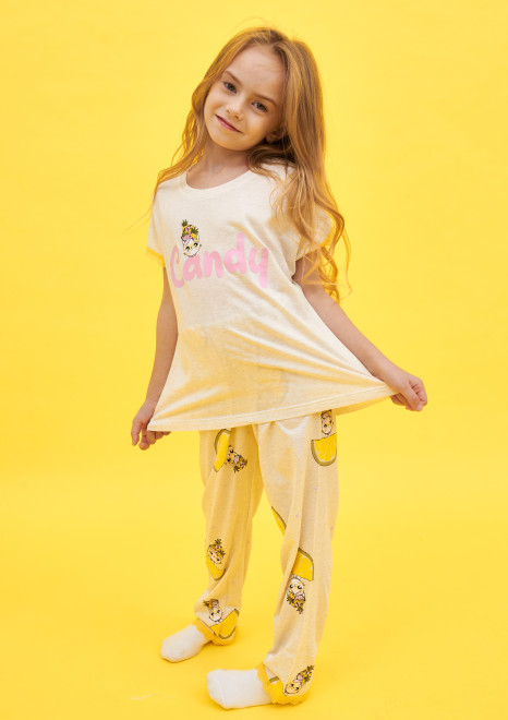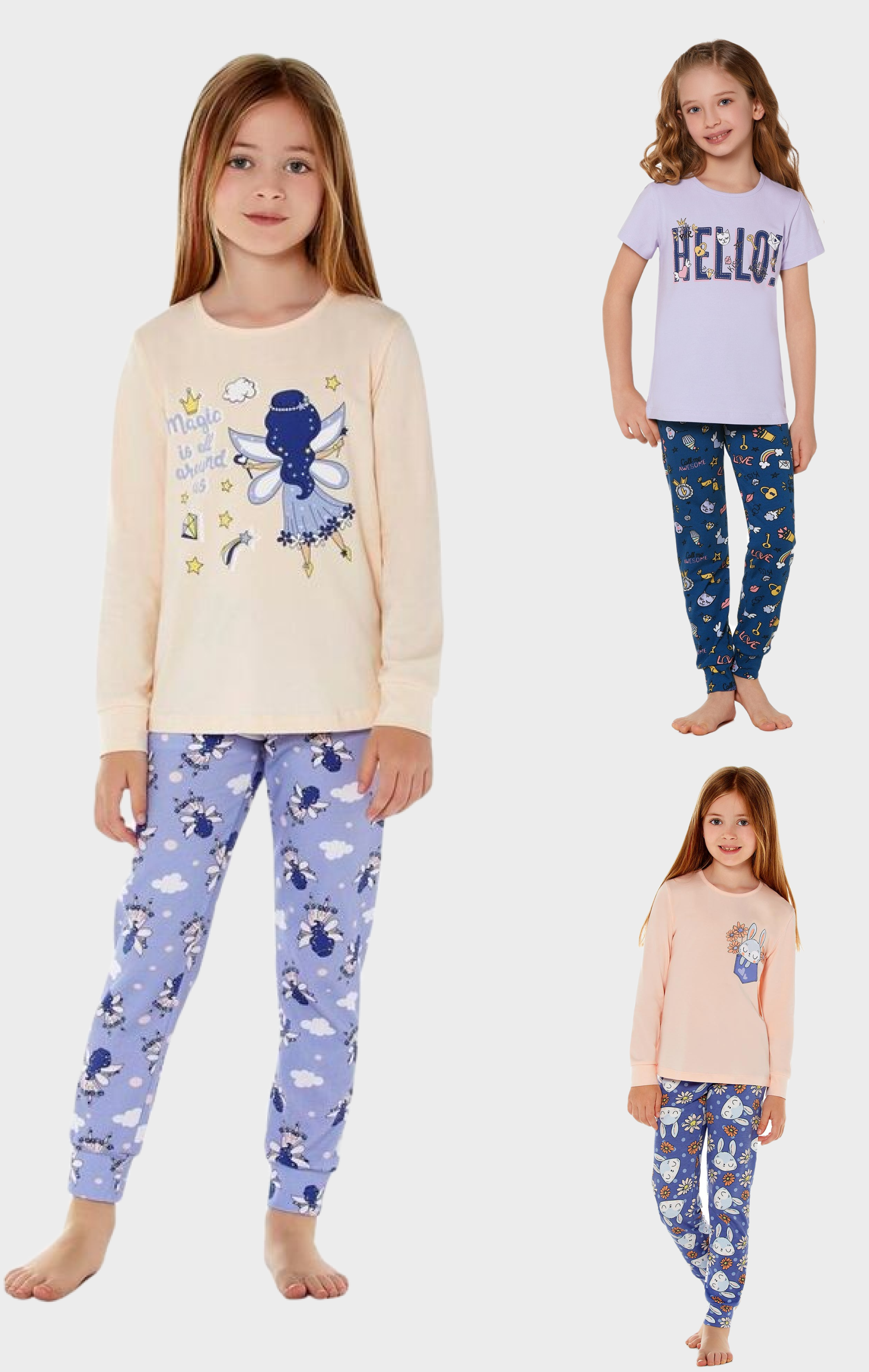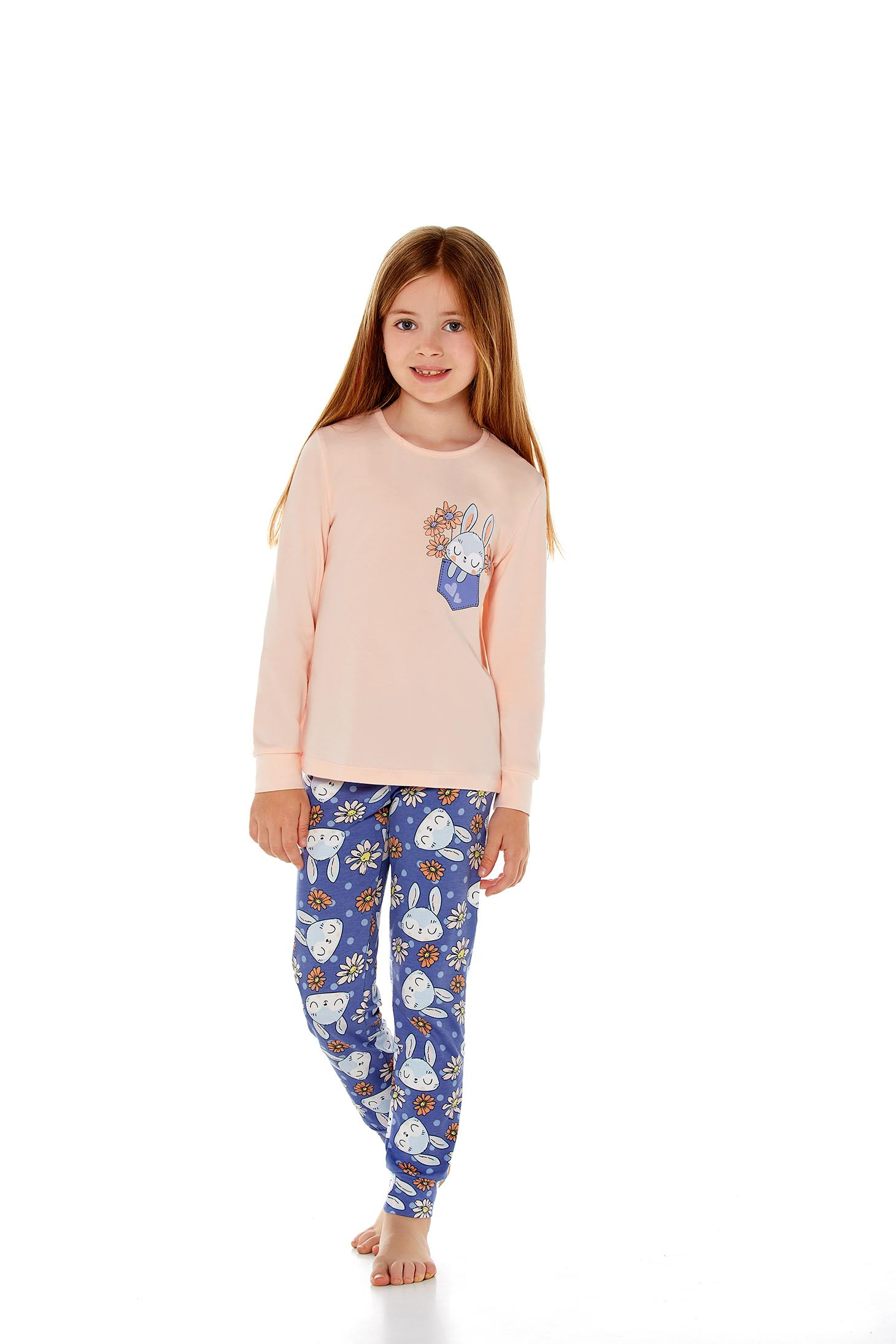 Стильная, уютная детская пижама, приятных оттенков без утеплителя и начеса. Пижама для девочки подойдёт как домашняя одежда, для сна и отдыха. Комплект состоит из кофты (лонгслив) с длинным рукавом и домашних штанов свободного кроя на манжете, выполненных из мягкого трикотажа.