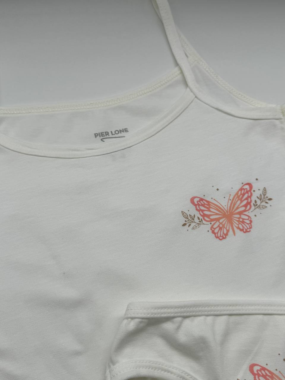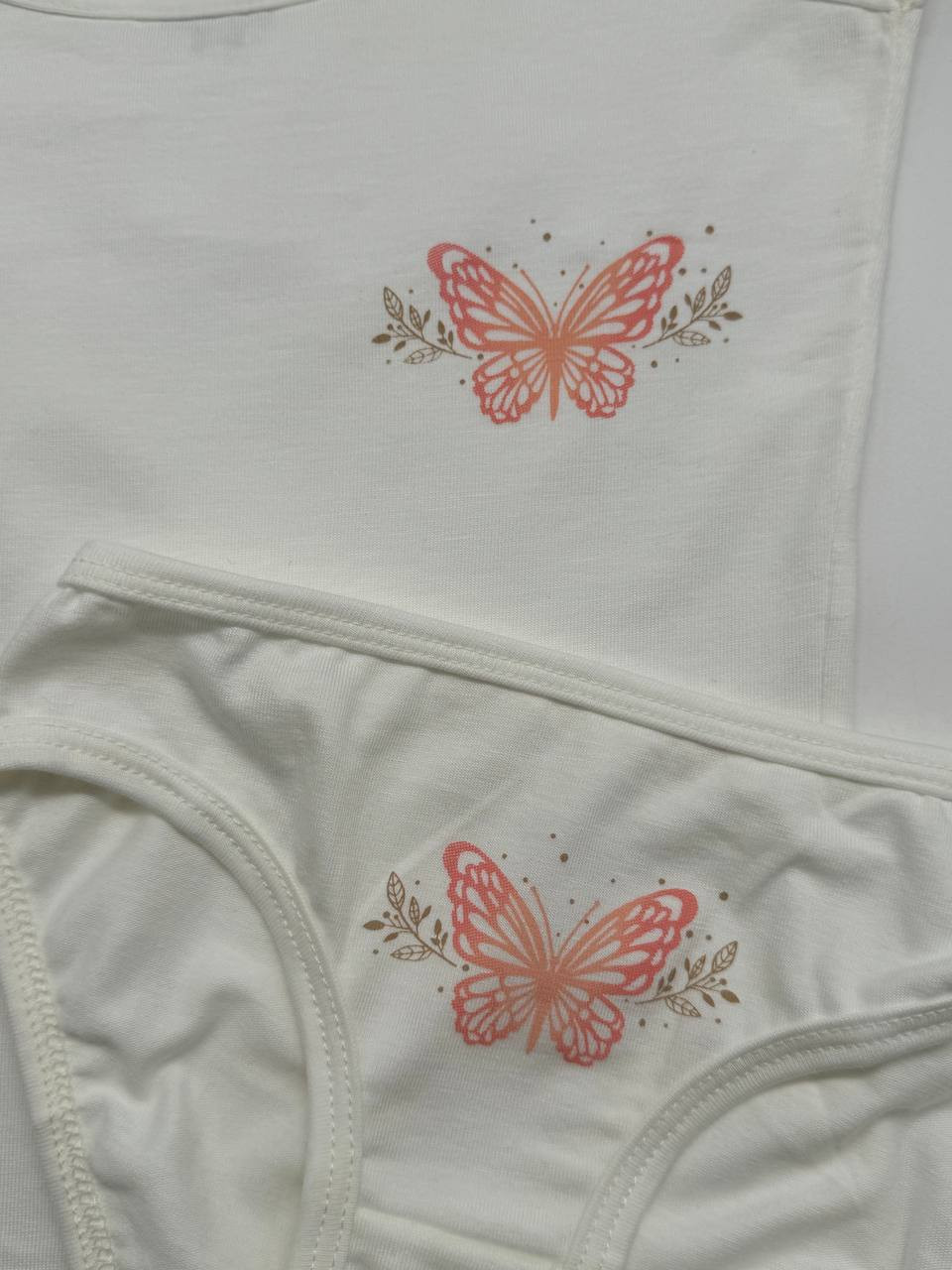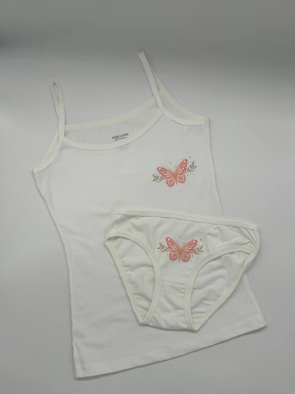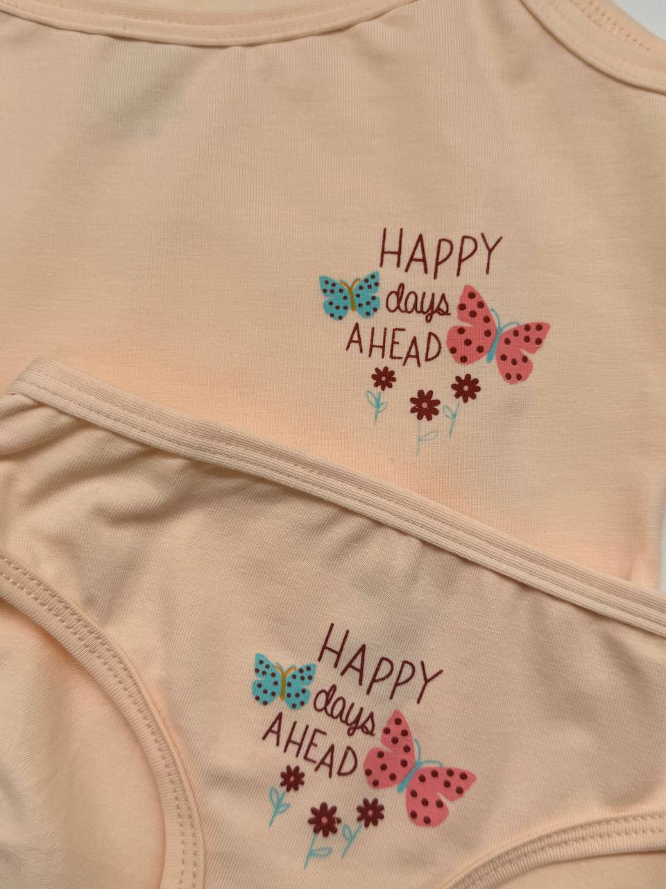 Комплект для девочки состоит из майки на тонких бретельках и трусиков. Цвета в ассортименте. Цена указана за 1 комплект.