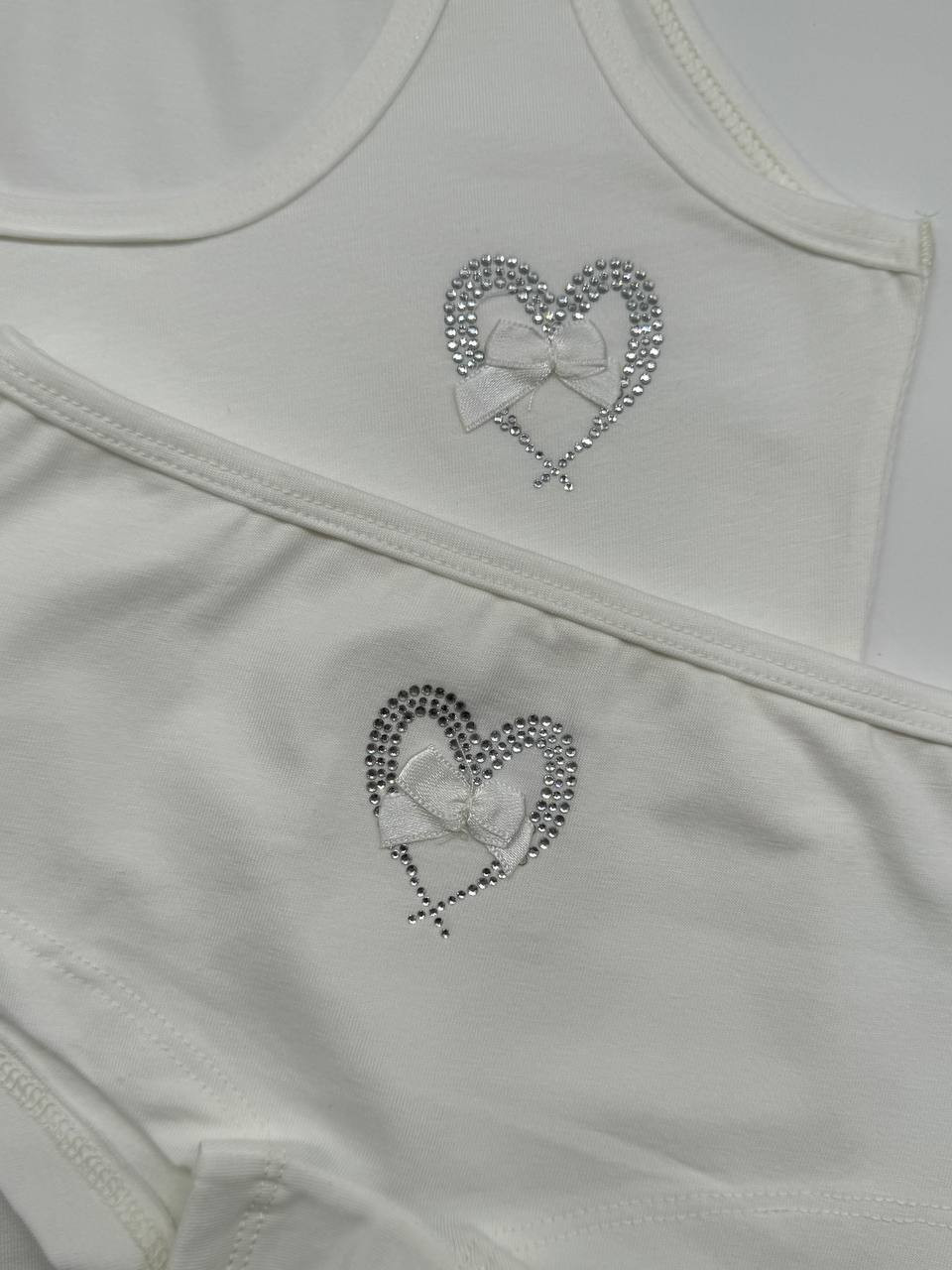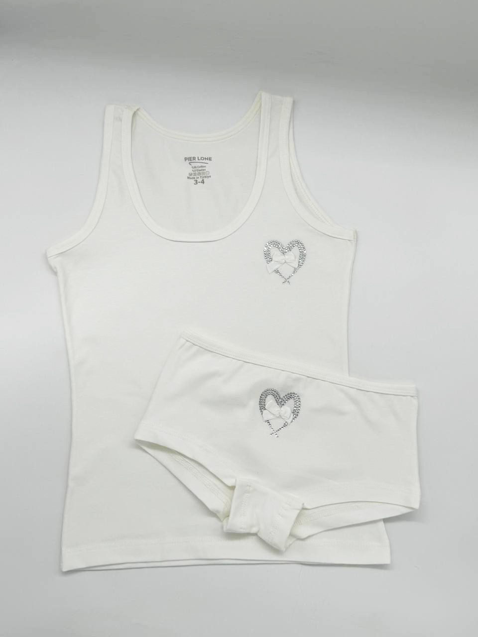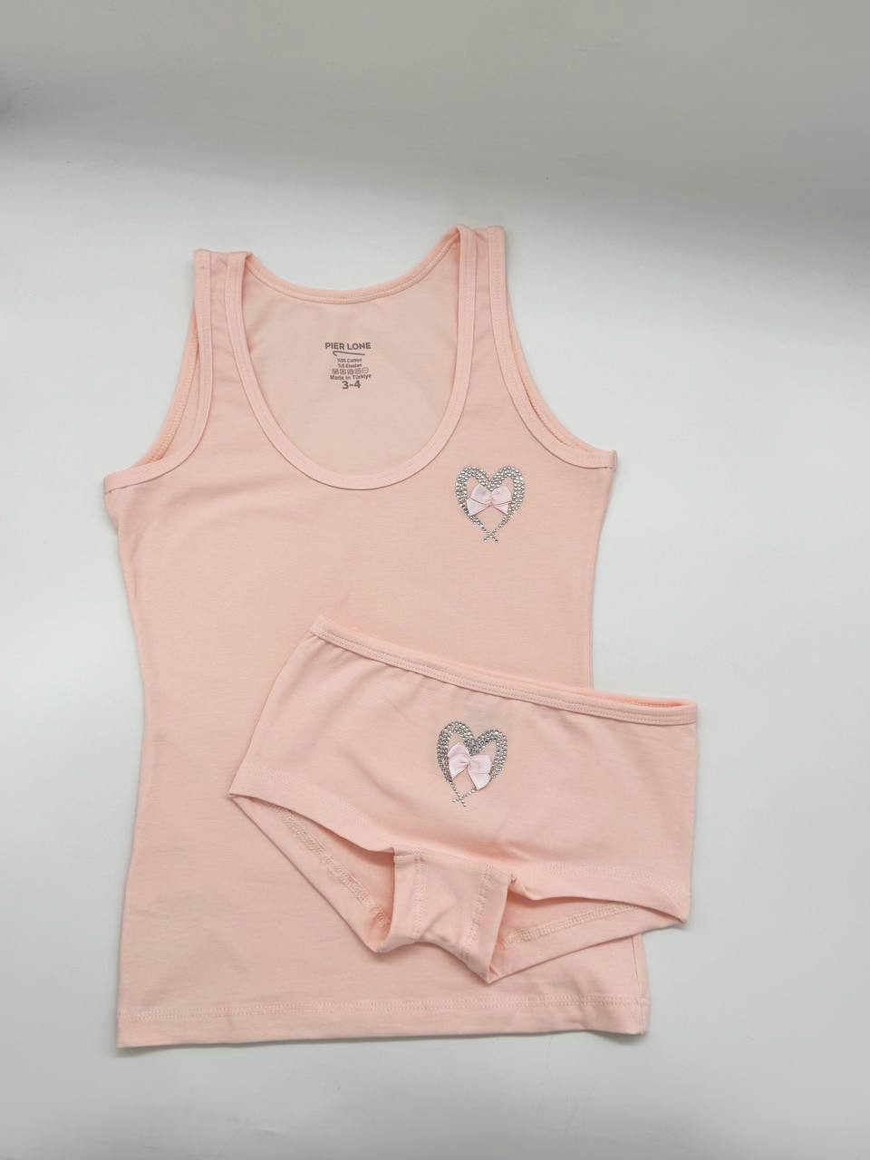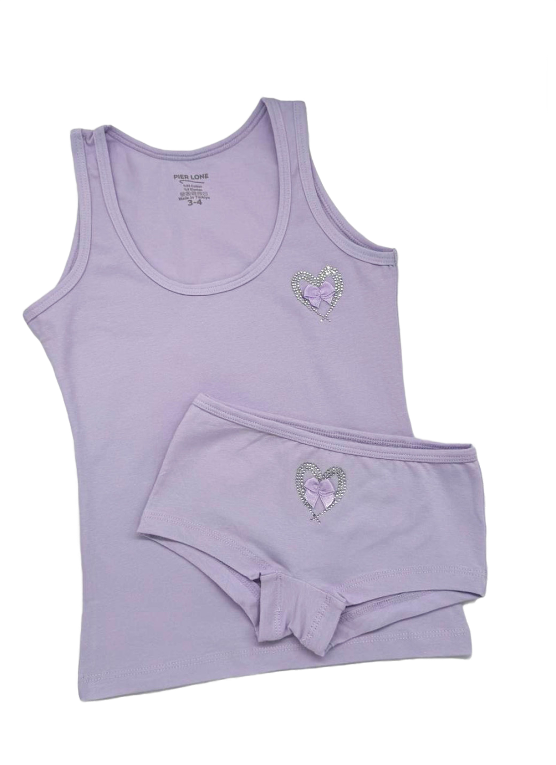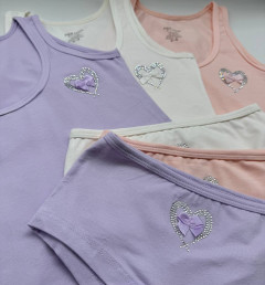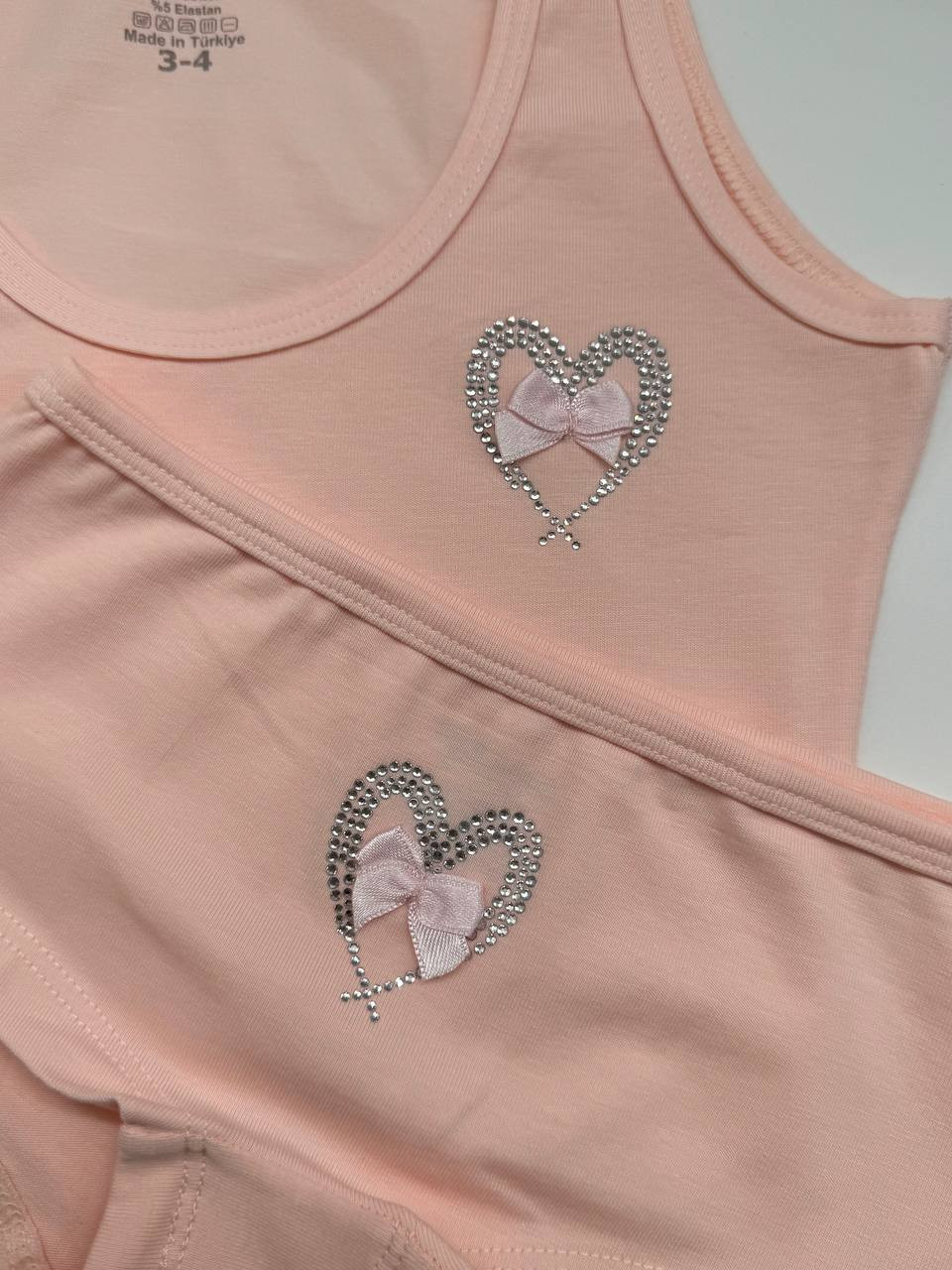 Комплект для девочки состоит из майки на широких бретельках и трусиков. Цвета в ассортименте. Цена указана за 1 комплект.