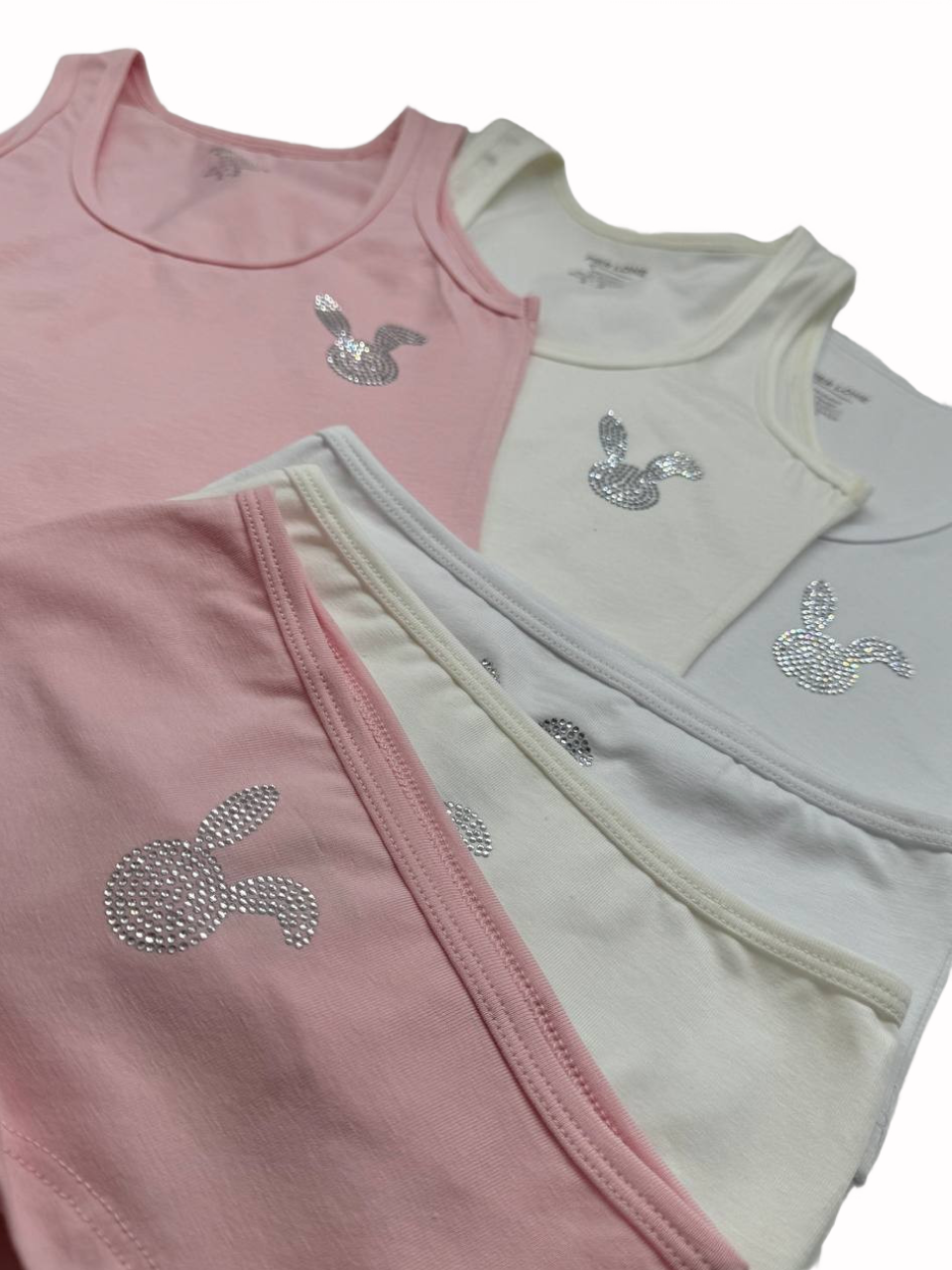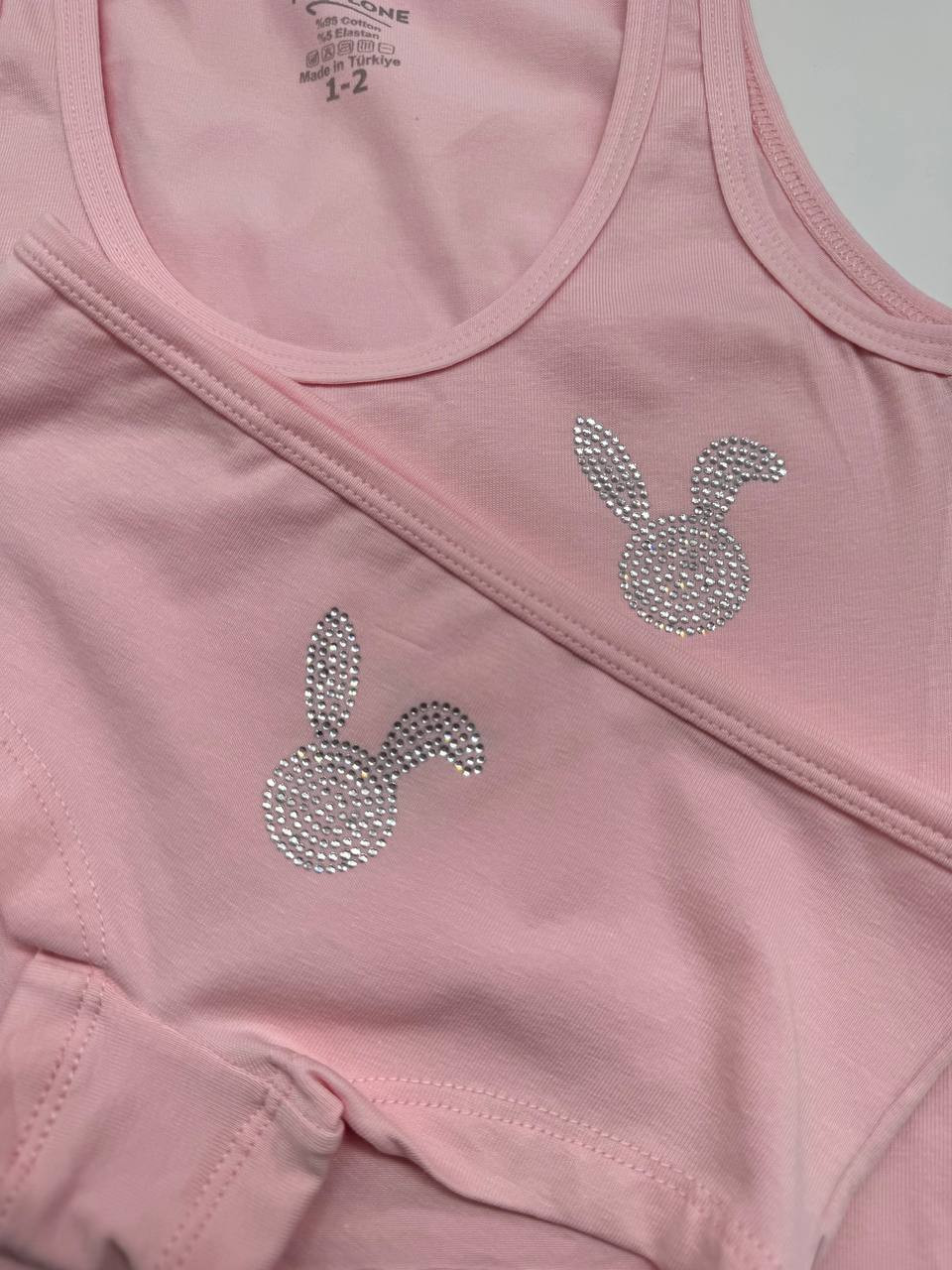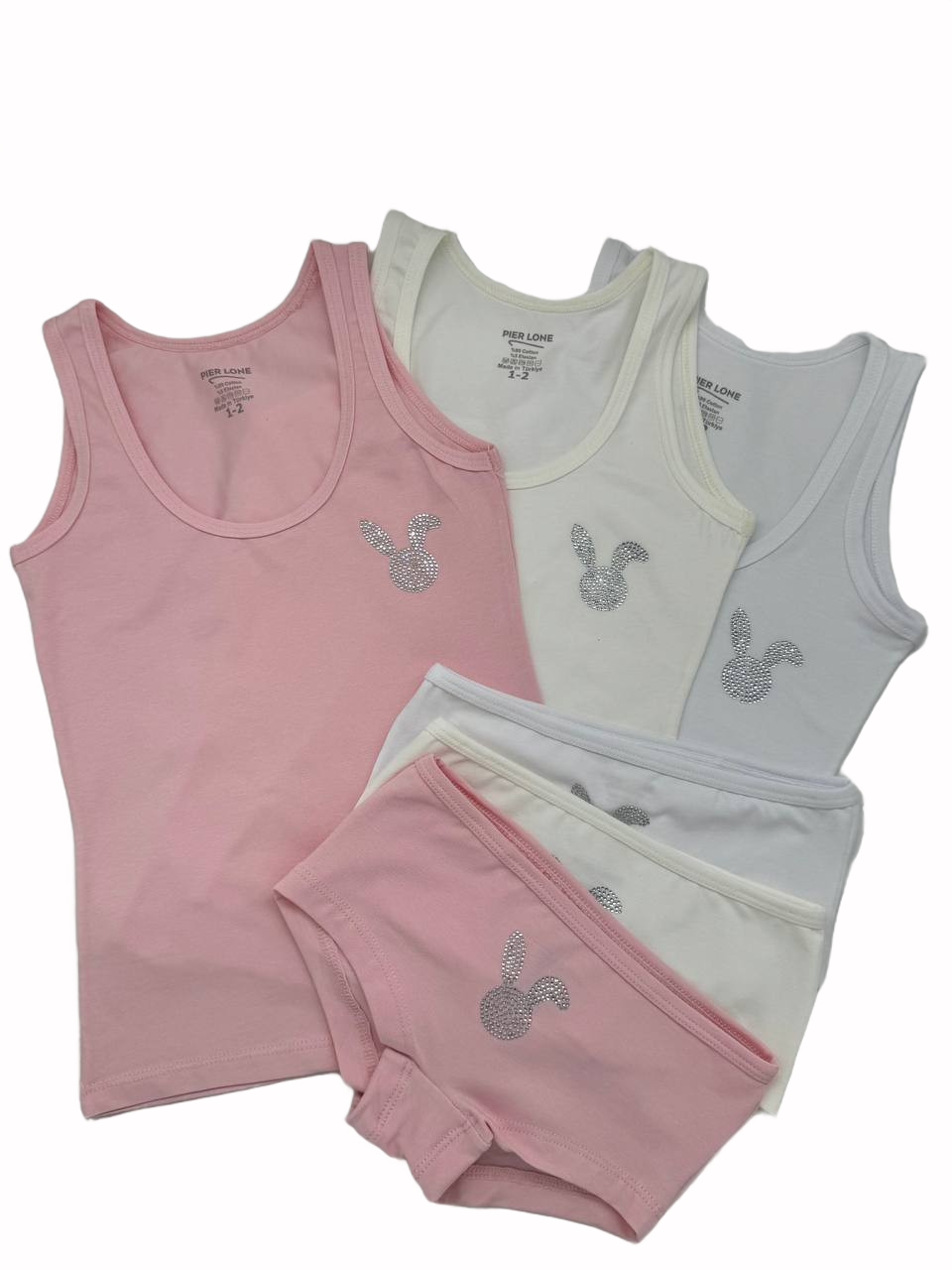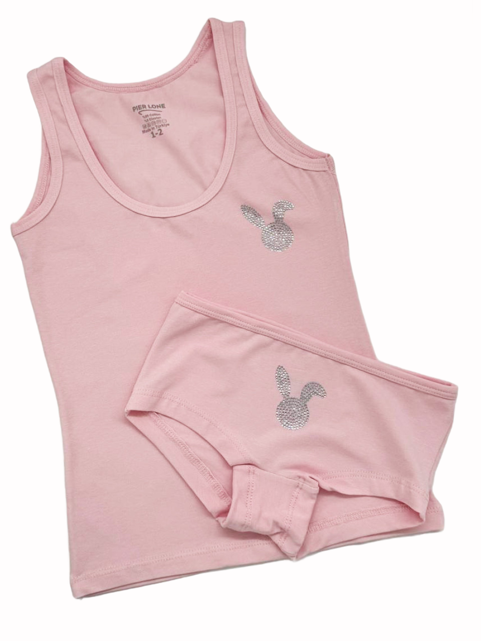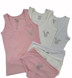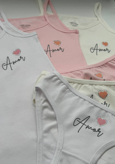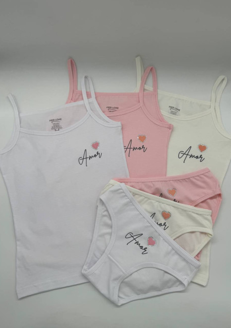Комплект для девочки состоит из майки на широких бретельках и трусиков. Цвета в ассортименте. Цена указана за 1 комплект.