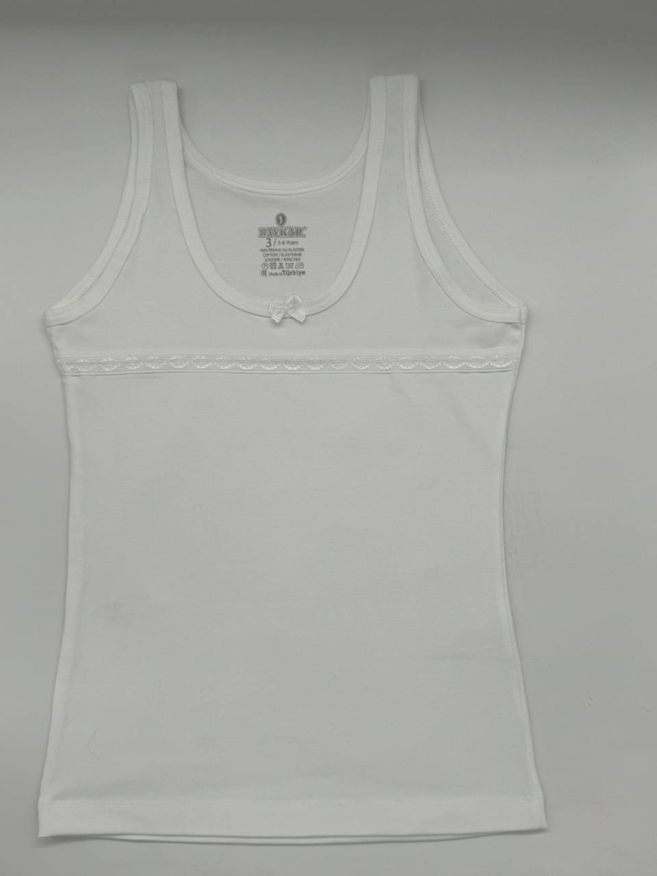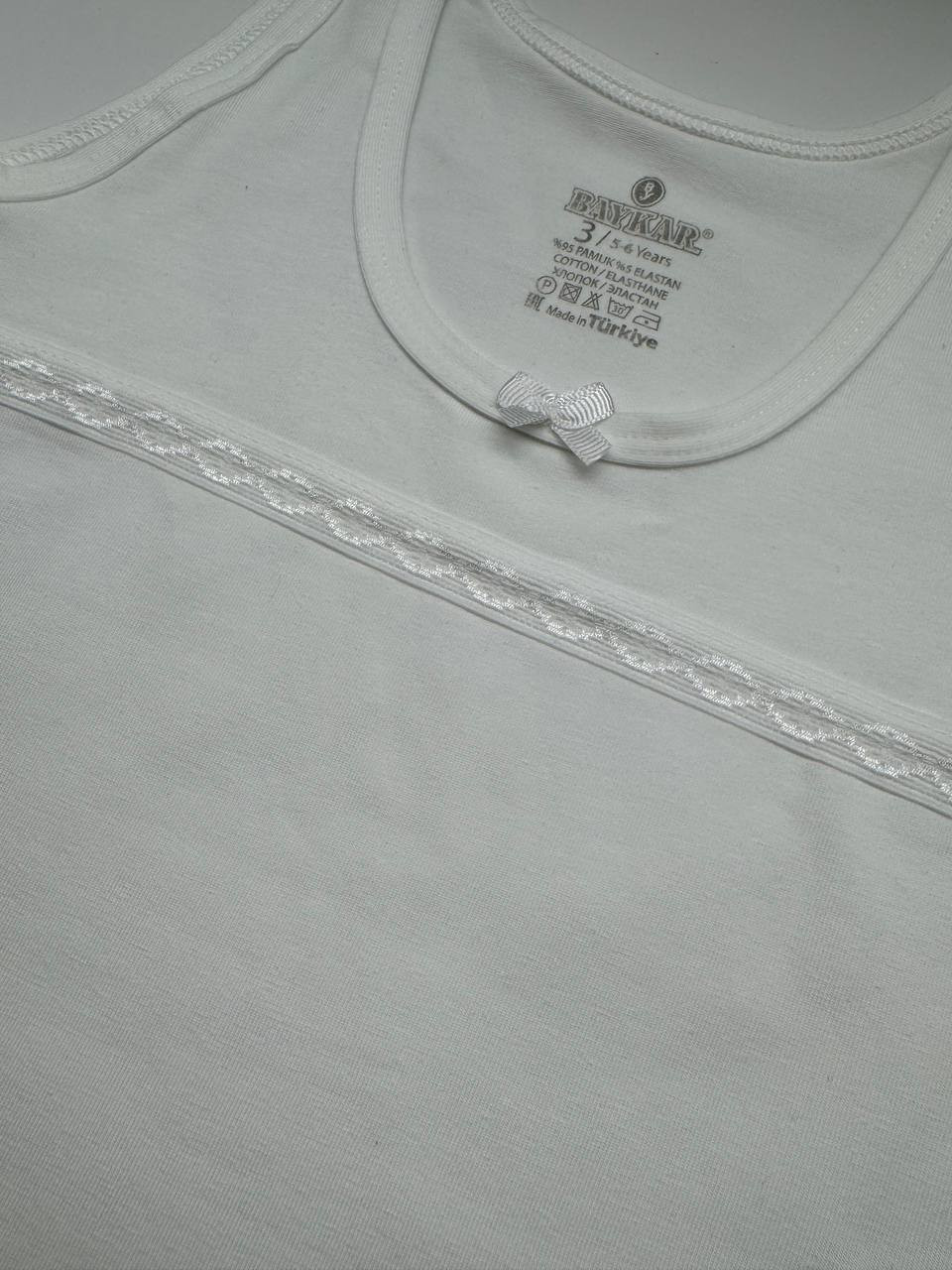 Майка для девочки на широких бретельках представлена в белом цвете, что подчеркивает ее универсальность и подходит к каждому повседневному образу. Майка из натурального хлопка приятно облегает тело ребенка, не вызывая раздражения. Хлопковая ткань прекрасно дышит и поддерживает оптимальный температурный режим тела ребенка в течение дня. Маечка украшена мягким кружевом. Цена указана за 1 шт.