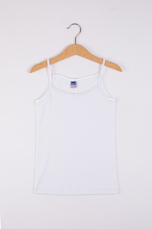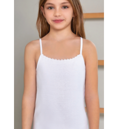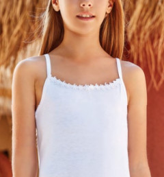 Майка для девочки представлена в белом цвете, что подчеркивает ее универсальность и подходит к каждому повседневному образу. Майка из натурального хлопка приятно облегает тело ребенка, не вызывая раздражения. Хлопковая ткань прекрасно дышит и поддерживает оптимальный температурный режим тела ребенка в течение дня, что особенно важно в теплую погоду. Горловина маечки на тонких бретельках украшена мягким кружевом.