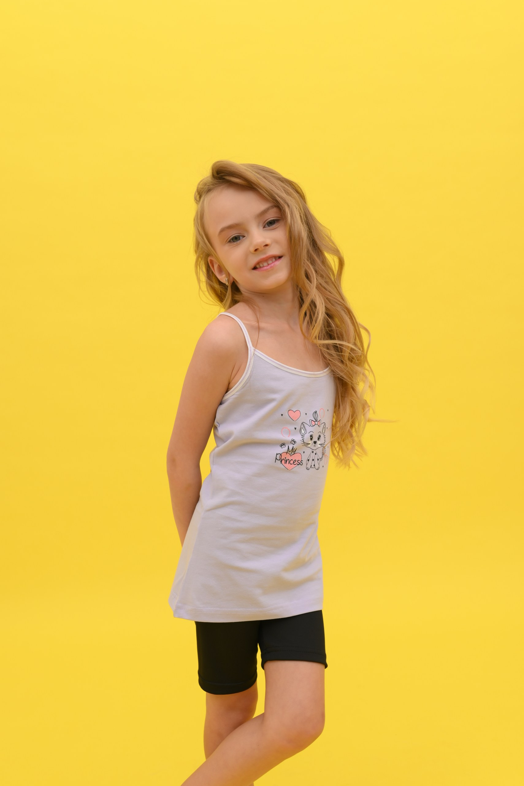 Майка для девочек на тонких бретелях. Цвета в ассортименте.