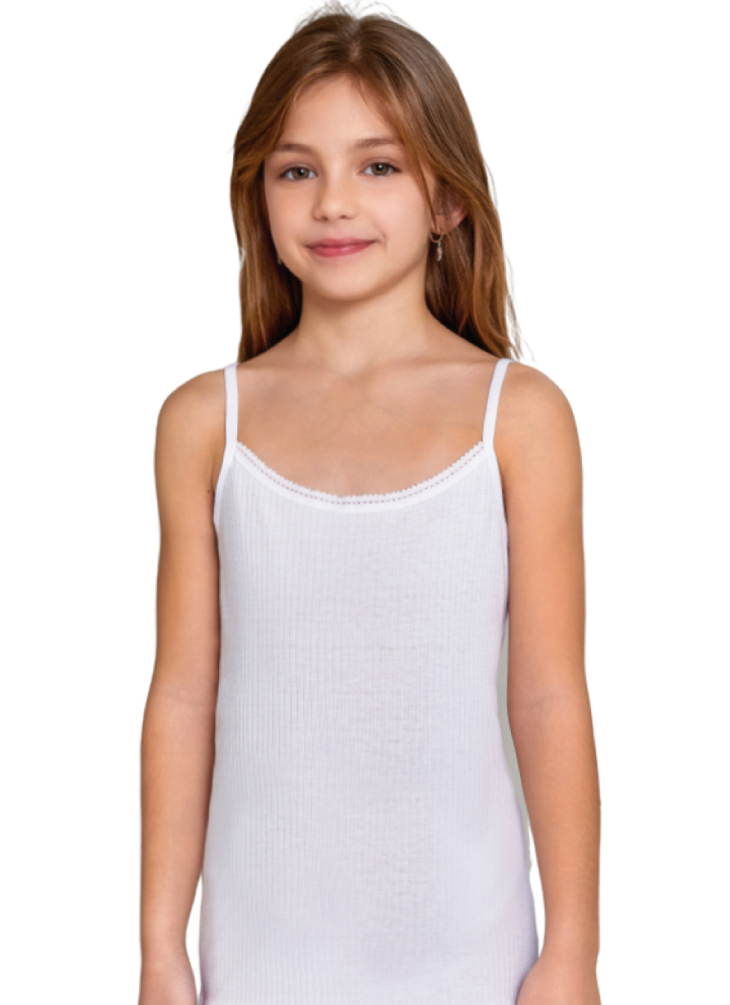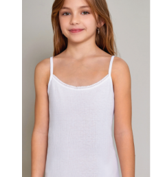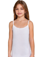 Майка для девочки на тонких бретельках представлена в белом цвете, что подчеркивает ее универсальность и подходит к каждому повседневному образу. Майка из натурального хлопка приятно облегает тело ребенка, не вызывая раздражения. Хлопковая ткань прекрасно дышит и поддерживает оптимальный температурный режим тела ребенка в течение дня. Горловина маечки украшена мягким кружевом.