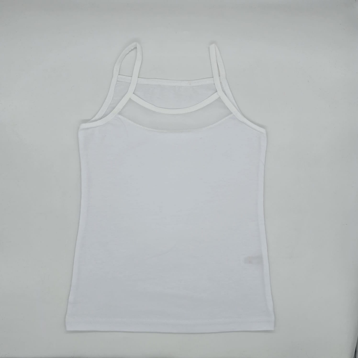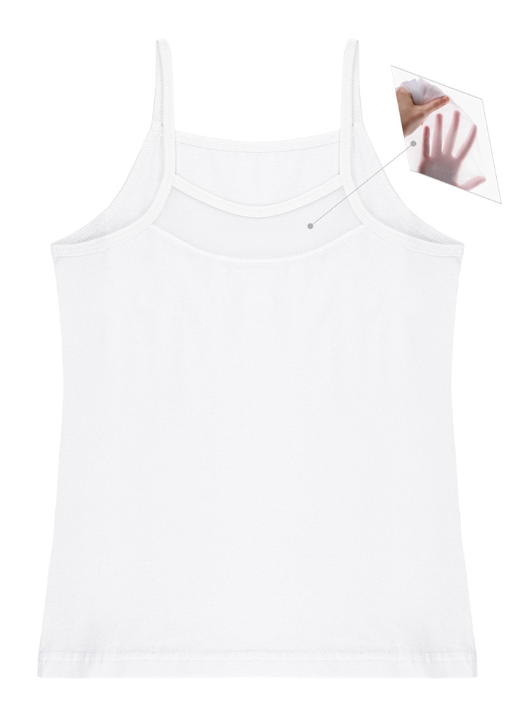 Майка для девочки на тонких бретельках, со вставкой из сеточки на груди. Приталенная, не вытягивается после многократных стирок. Отличного качества