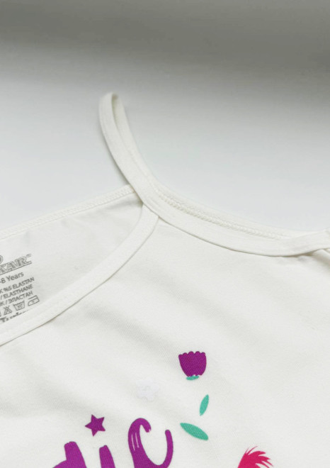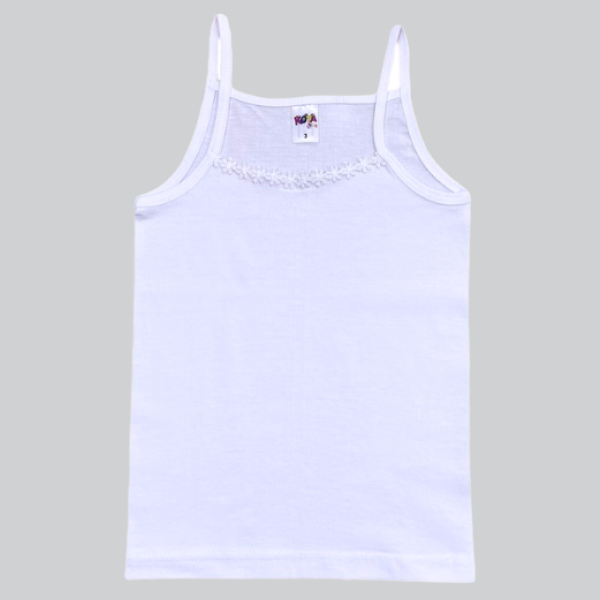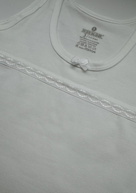 Базовая майка для девочки на тонких бретельках представлена в белом цвете, что подчеркивает ее универсальность и подходит к каждому повседневному образу. Майка из натурального хлопка приятно облегает тело ребенка, не вызывая раздражения. Хлопковая ткань прекрасно дышит и поддерживает оптимальный температурный режим тела ребенка в течение дня.