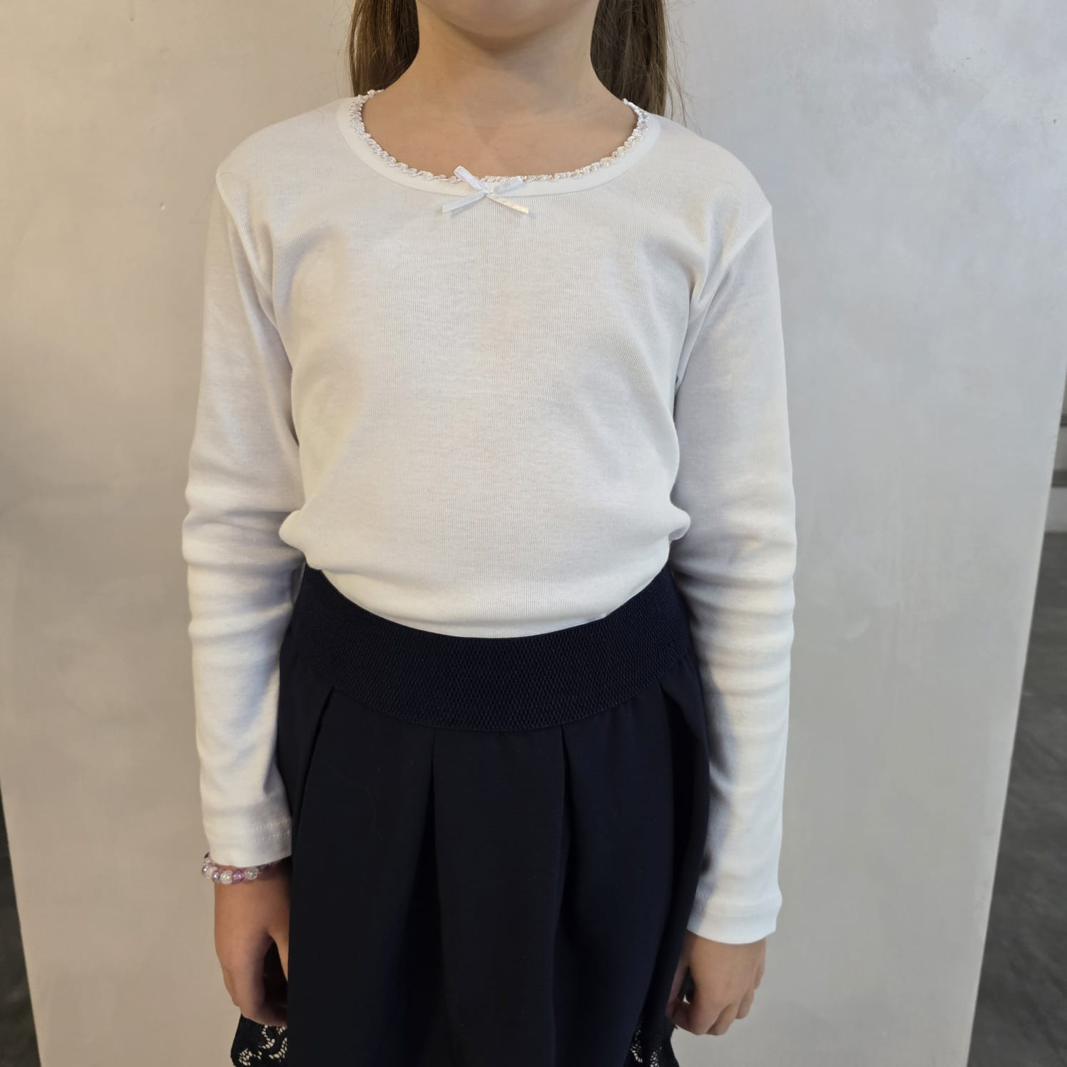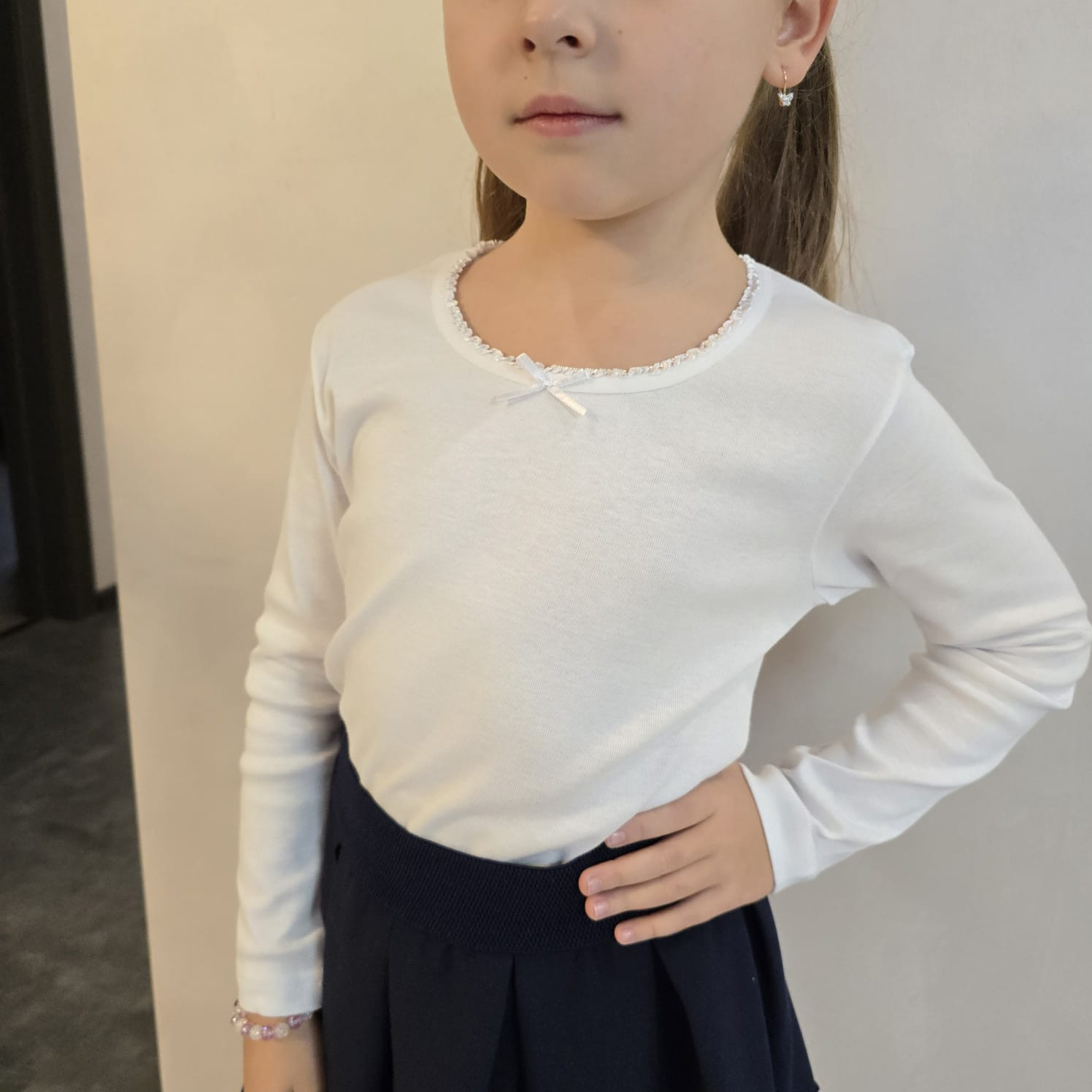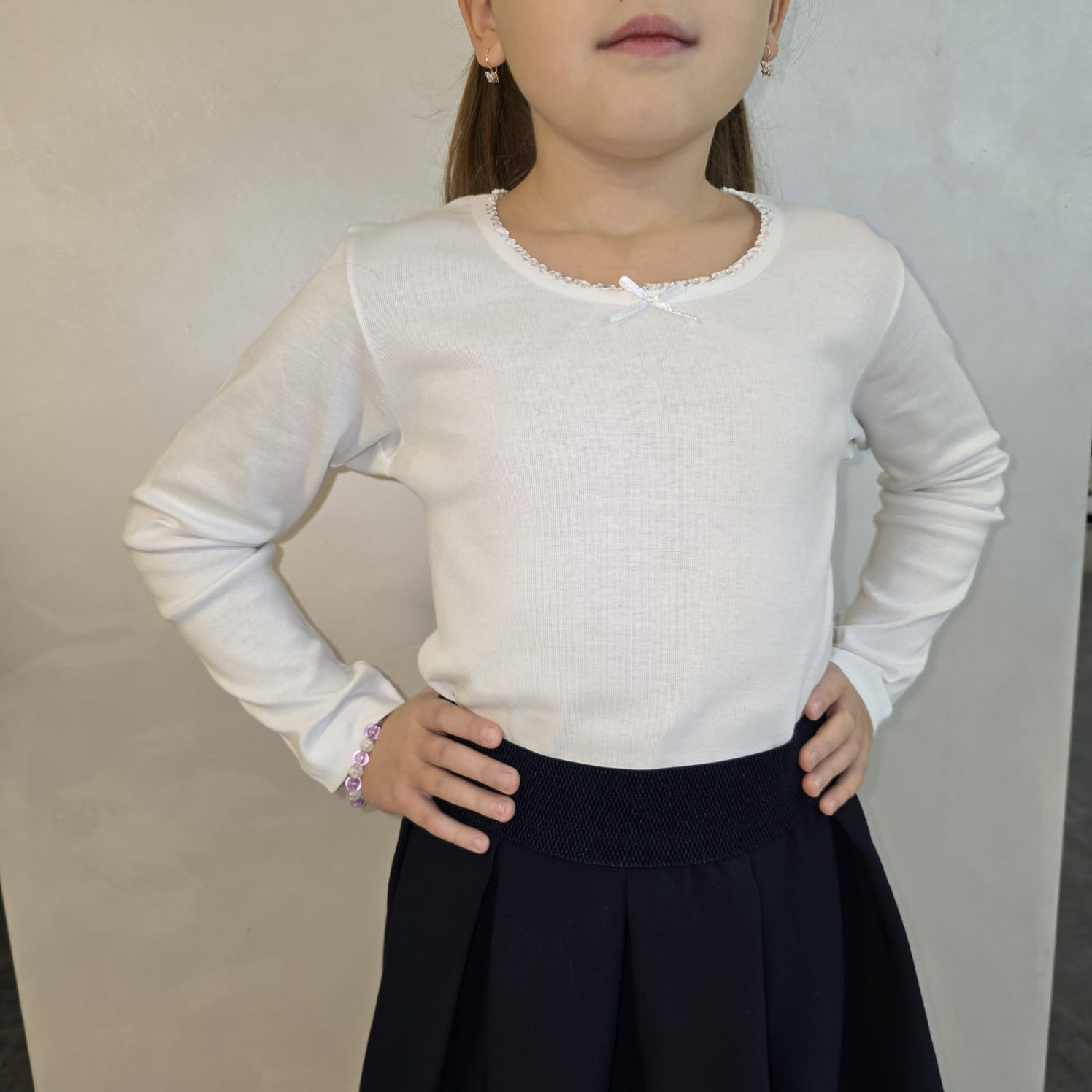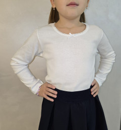 Классическая детская кофта из тонкого трикотажа, ажурная отделка горловины. Отлично подойдет для школы и детского сада