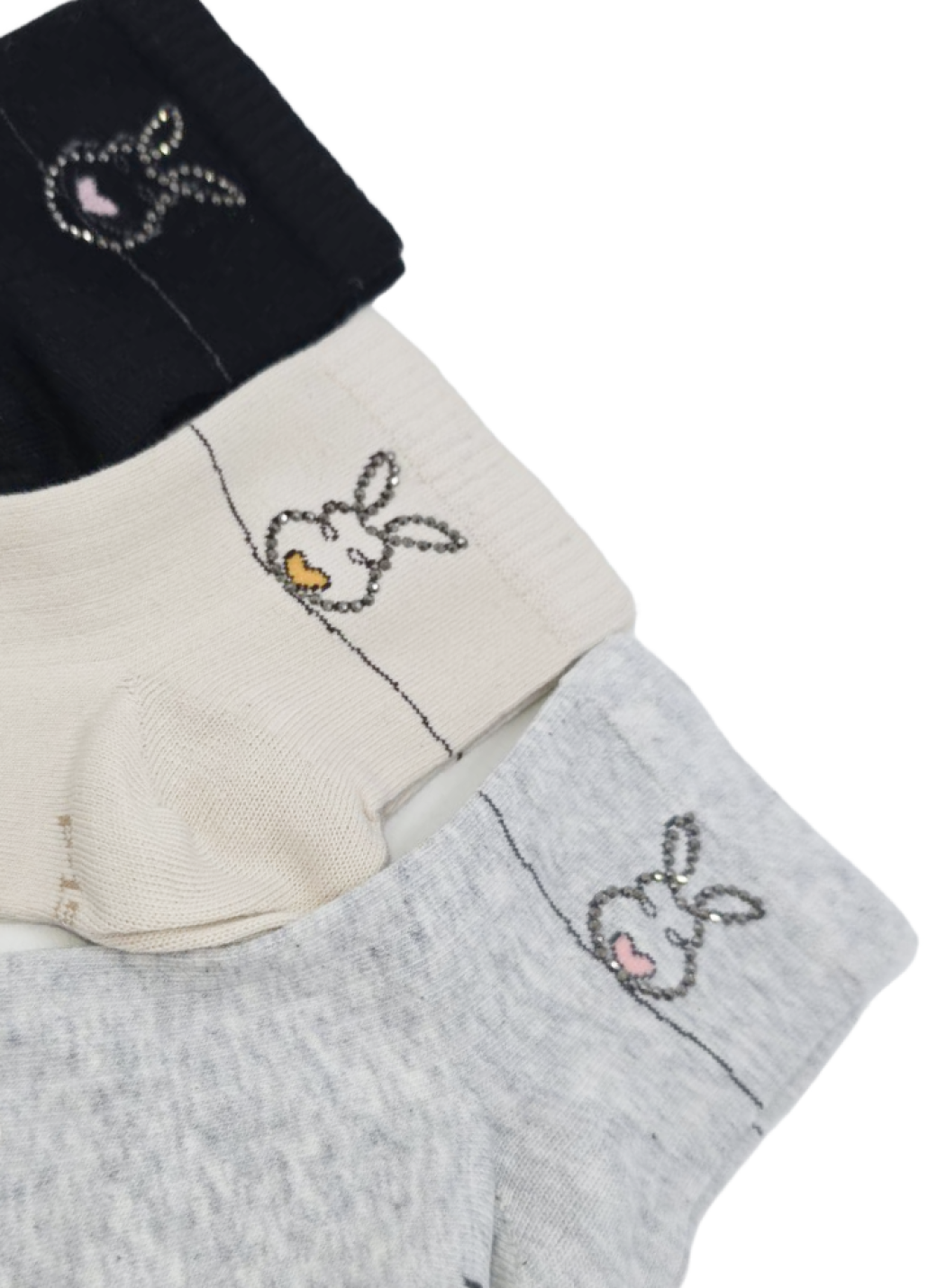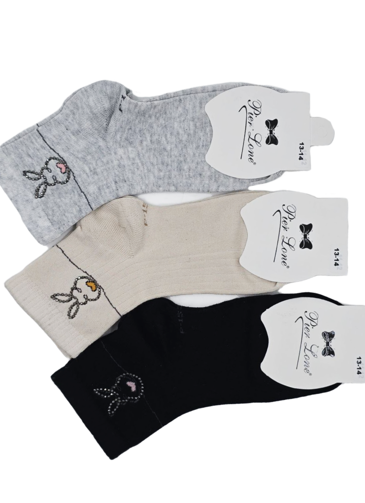 Носки с декоративным элементом в виде зайчика со стразами.