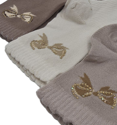 Носки с декоративным элементом в виде бантика золотого цветов.