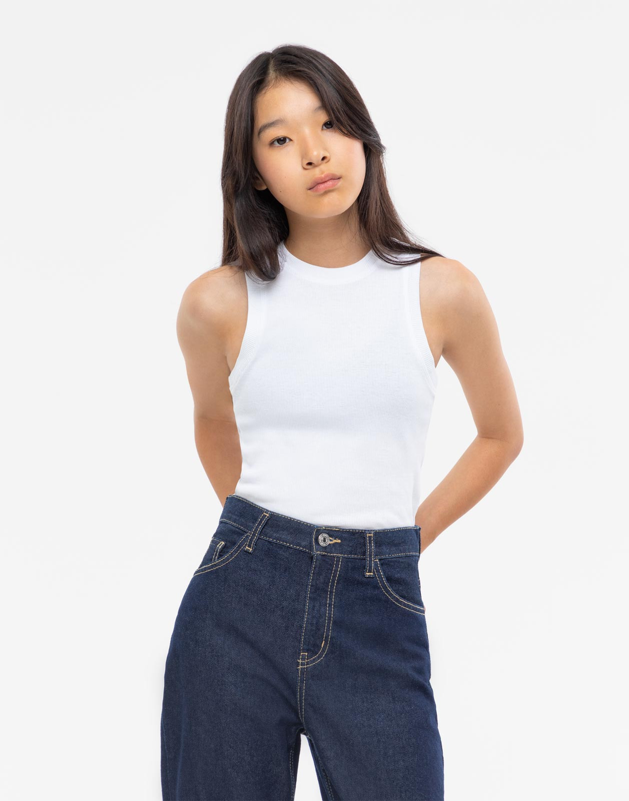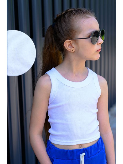 Топ для девочек, ткань в мелкий рубчик, приятно облегает тело.