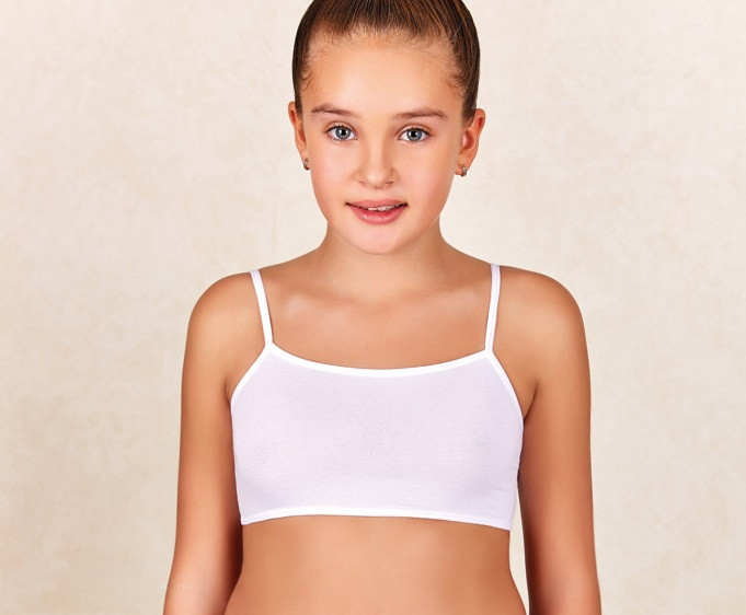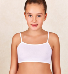 Подростковый топ-бра Berrak белого цвета на тонких регулируемых бретелях, эластичная резинка по низу изделия, без чашек.