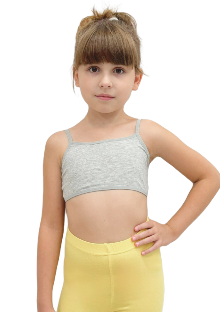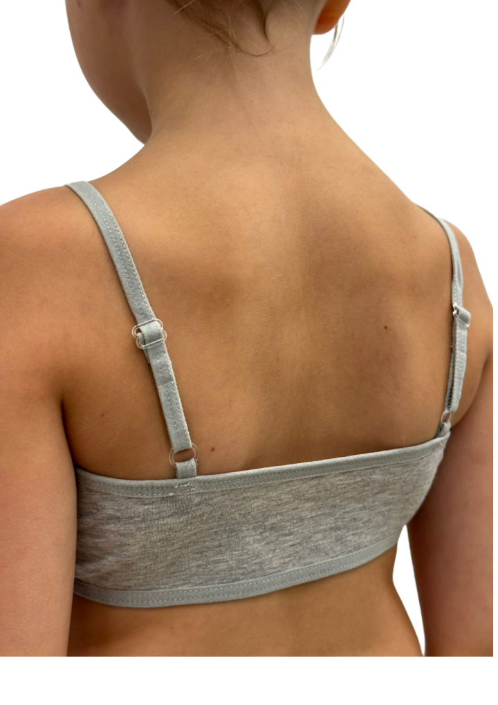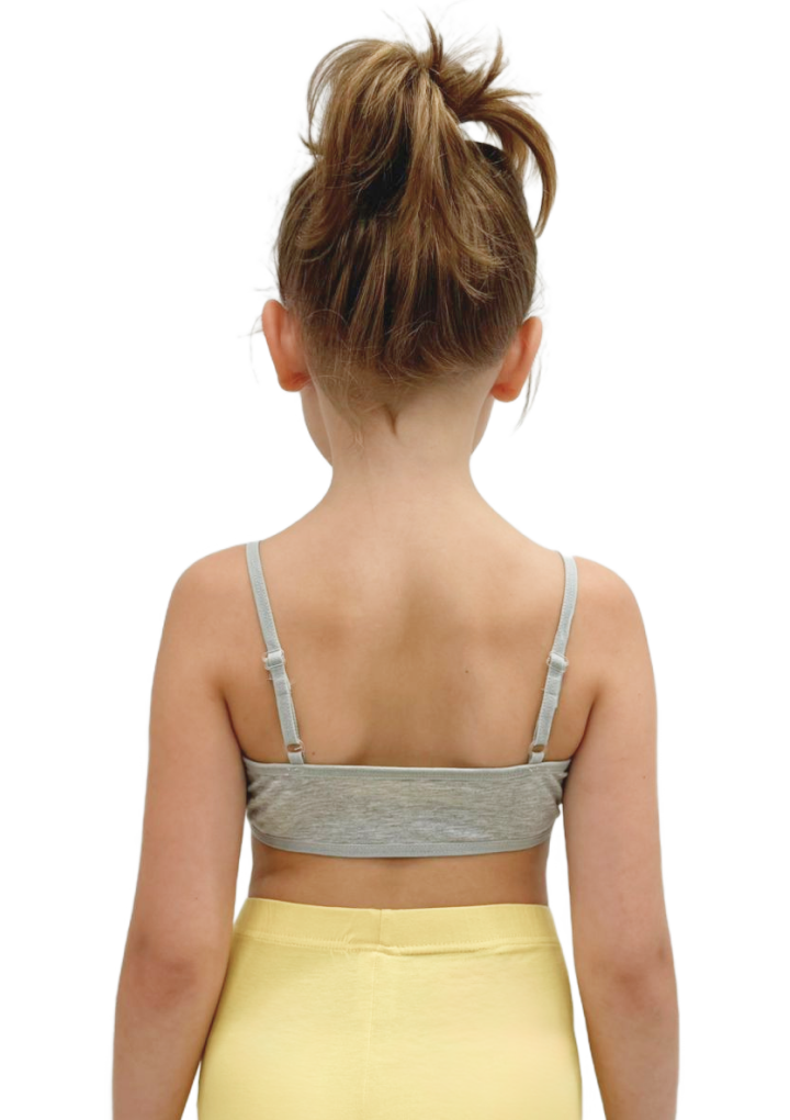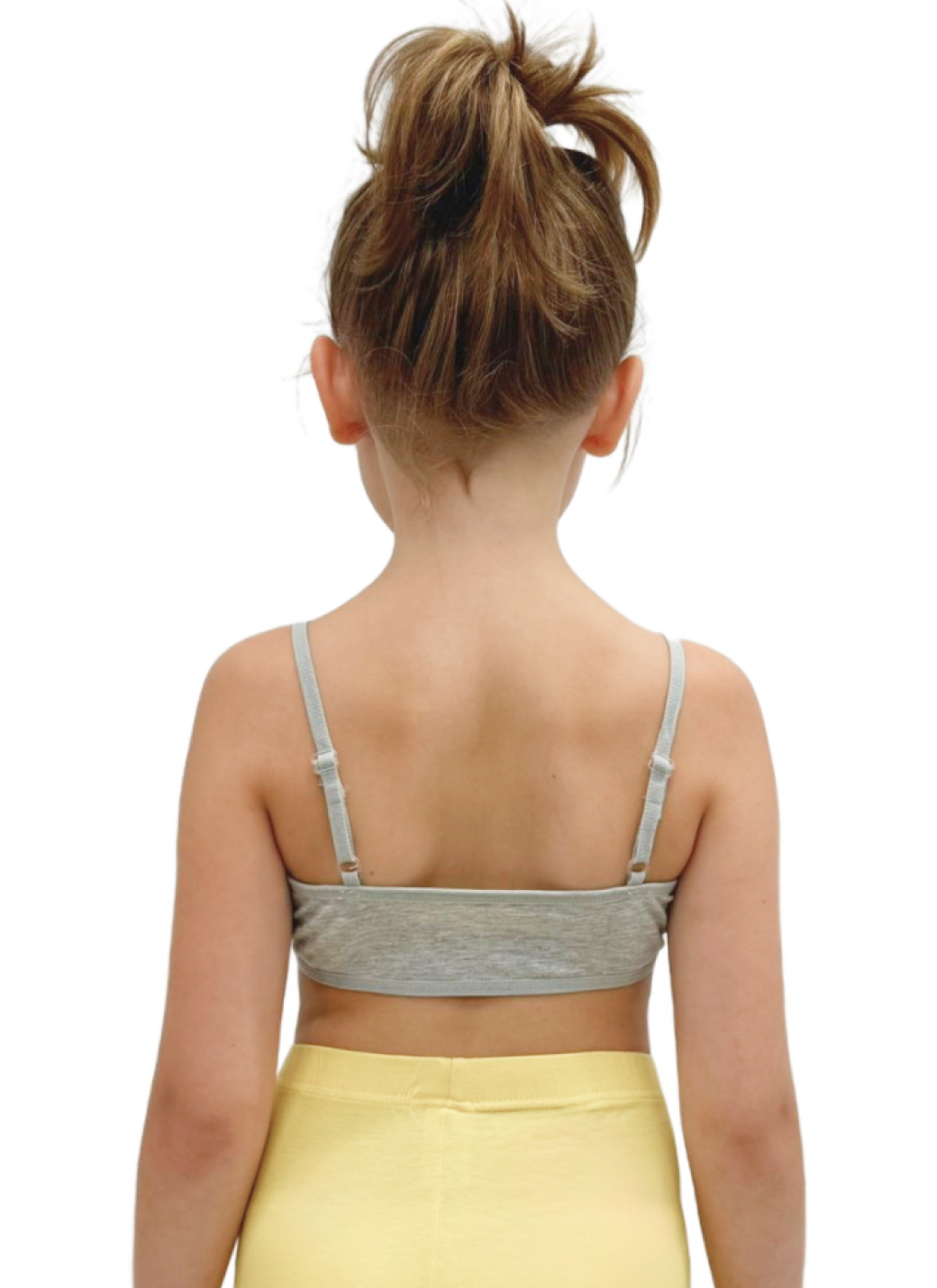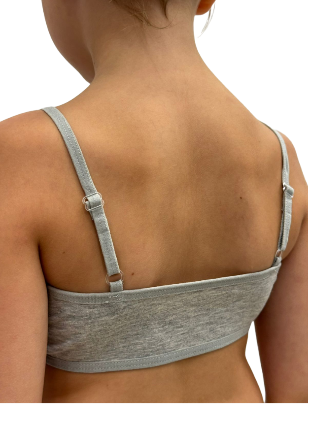 Подростковый топ-бра Berrak серого цвета на тонких регулируемых бретелях, эластичная резинка по низу изделия, без чашек.