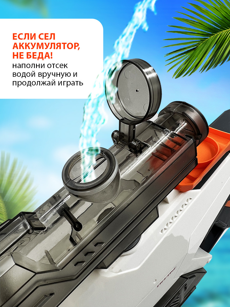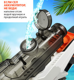 Водяной бластер космический оснащен мощным электрическим двигателем, который обеспечивает быструю и непрерывную стрельбу без необходимости накачивания воды перед каждым выстрелом.