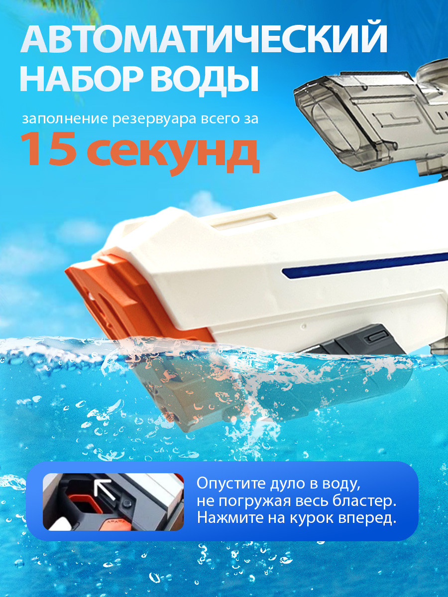 В комплекте есть даже возможность брать воду порциями, чтобы не перенаполнять емкость и не перегружать механизм. Он также подходит для использования в бассейне, на пляже или на даче благодаря водонепроницаемому корпусу. водный автомат отличный способ охладиться и устроить веселую игру с друзьями. Этот Автомат-бластер в виде космического автомата выглядит очень крутым и выполнен из высококачественных материалов.