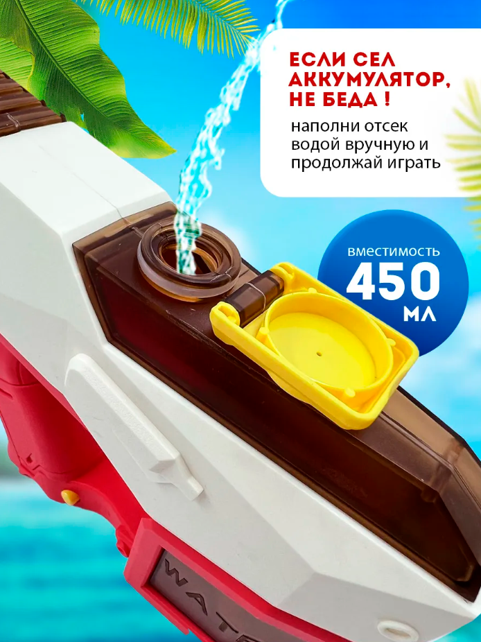 Этот водяной пистолет имеет желтый цвет, который привлекает внимание и вызывает радость у детей всех возрастов. Он может использоваться как в помещении, так и на улице, что делает его универсальным и интересным для игры.