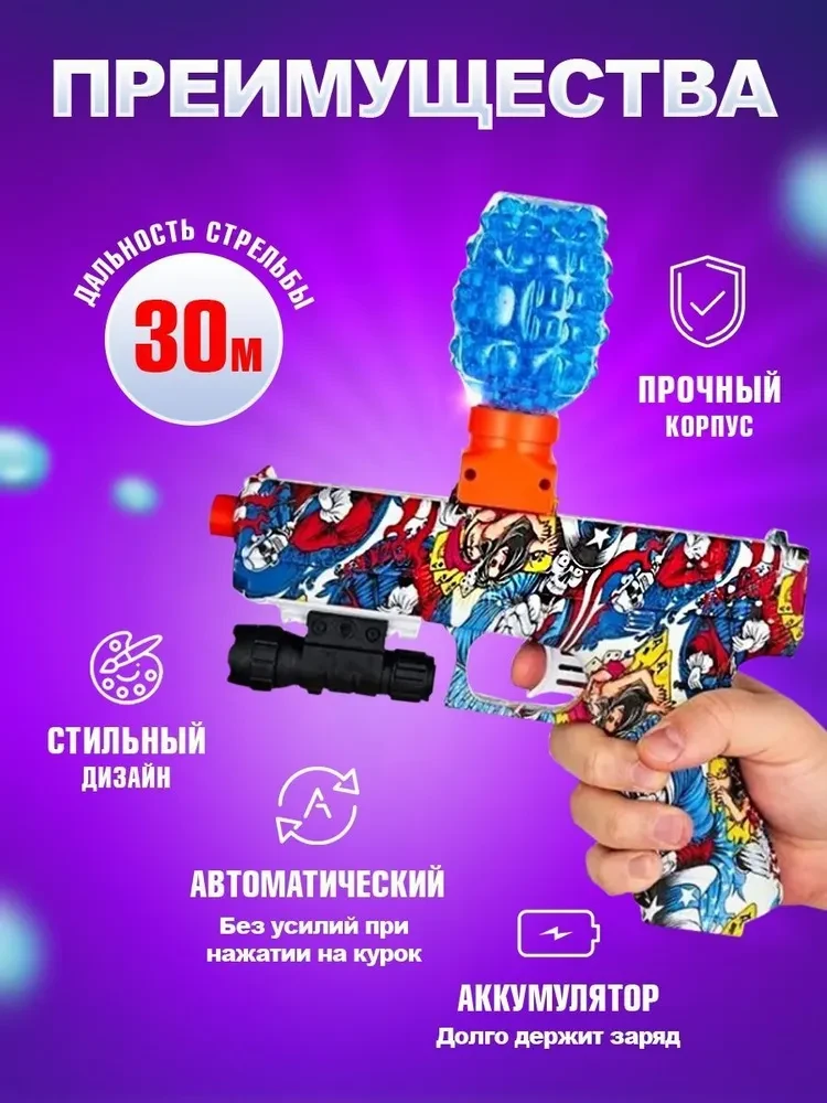 Детский пистолет с прицелом и орбизами (водяные пульки) для детей