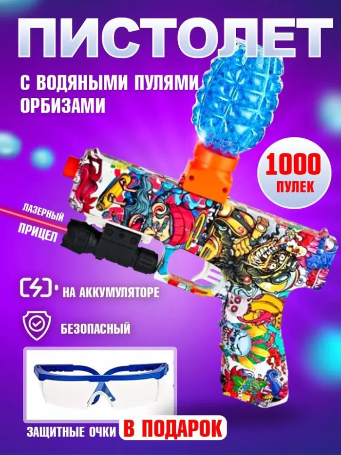 Детский пистолет с прицелом и орбизами (водяные пульки) для детей