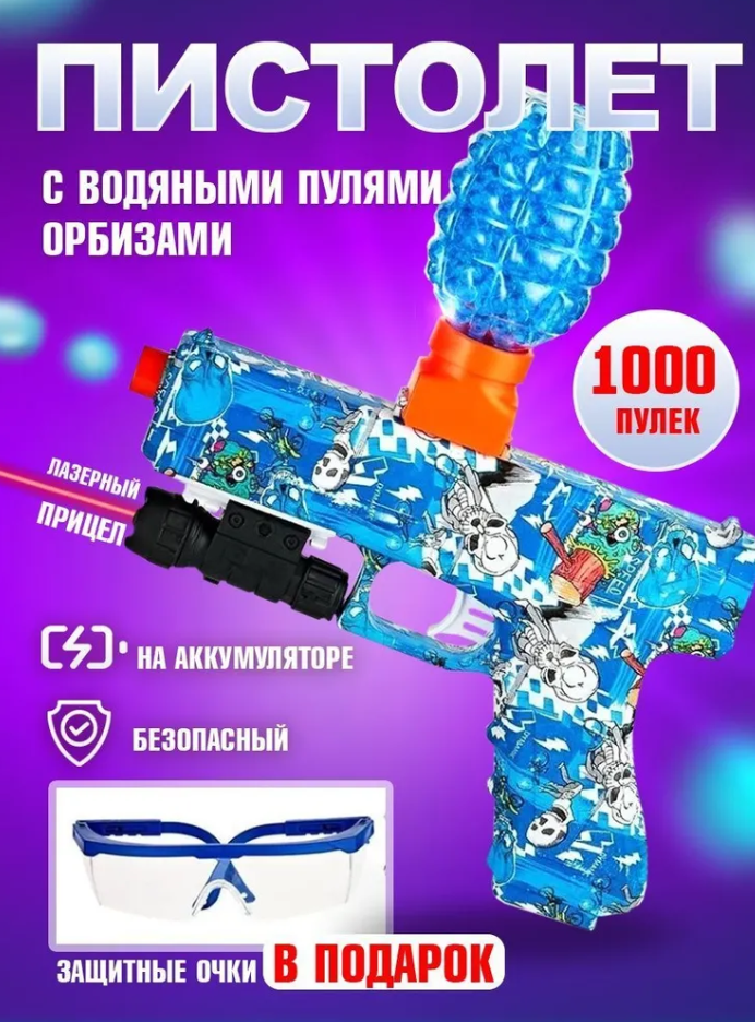 Детский пистолет с прицелом и орбизами (водяные пульки) для детей