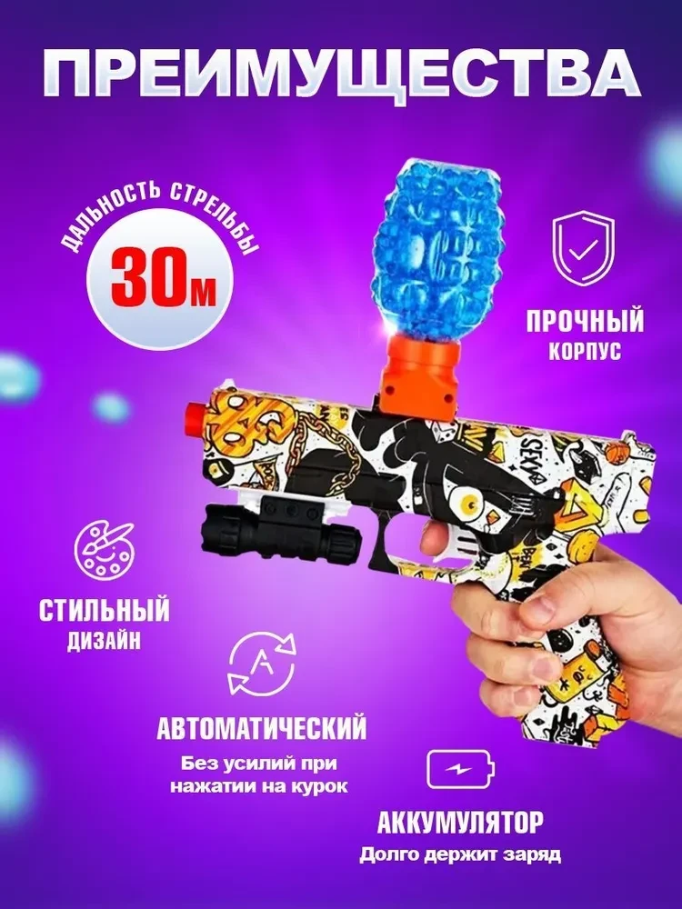 Детский пистолет с прицелом и орбизами (водяные пульки) для детей