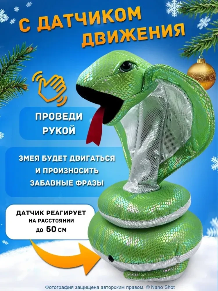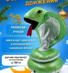 Встречайте уникального и веселого друга для всей семьи — интерактивную двигающуюся Кобру! Этот удивительный подарок станет отличным выбором как для детей, так и для взрослых, особенно в преддверии Нового года. Змея не только радует глаз, но и обладает множеством интерактивных функций, которые сделают ваше времяпрепровождение незабываемым. Представьте, как ваша новая змея реагирует на движения! Достаточно поднести руку к ней, и она тут же скажет веселую фразу, поднимая настроение всем вокруг. Этот забавный момент станет отличной основой для веселых семейных игр и развлечений. Кроме того, змея имитирует укус, что добавляет элемент неожиданности и веселья. Но не переживайте — она абсолютно добрая и милая, что делает ее идеальным компаньоном для детей. Говорящая змея — это не просто игрушка, это настоящий символ 2025 года. Она станет ярким акцентом в вашем доме и будет радовать вас и ваших близких своими шутками и забавными движениями. Такой новогодний подарок обязательно запомнится и станет любимцем всей семьи. Интерактивная Кобра — это отличный способ развить воображение и креативность у детей, а также возможность для взрослых немного отвлечься от повседневных забот и насладиться игрой. Она подходит для любого возраста и станет прекрасным дополнением к праздничной атмосфере. Не упустите шанс сделать этот Новый год по-настоящему особенным! Подарите своим близким говорящую змею, которая станет не только интересной игрушкой, но и источником радости и смеха. Закажите интерактивную Кобру прямо сейчас и наслаждайтесь веселыми моментами с этой удивительной змеей!
