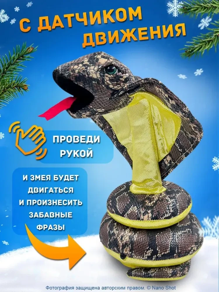 Встречайте уникального и веселого друга для всей семьи — интерактивную двигающуюся Кобру! Этот удивительный подарок станет отличным выбором как для детей, так и для взрослых, особенно в преддверии Нового года. Змея не только радует глаз, но и обладает множеством интерактивных функций, которые сделают ваше времяпрепровождение незабываемым. Представьте, как ваша новая змея реагирует на движения! Достаточно поднести руку к ней, и она тут же скажет веселую фразу, поднимая настроение всем вокруг. Этот забавный момент станет отличной основой для веселых семейных игр и развлечений. Кроме того, змея имитирует укус, что добавляет элемент неожиданности и веселья. Но не переживайте — она абсолютно добрая и милая, что делает ее идеальным компаньоном для детей. Говорящая змея — это не просто игрушка, это настоящий символ 2025 года. Она станет ярким акцентом в вашем доме и будет радовать вас и ваших близких своими шутками и забавными движениями. Такой новогодний подарок обязательно запомнится и станет любимцем всей семьи. Интерактивная Кобра — это отличный способ развить воображение и креативность у детей, а также возможность для взрослых немного отвлечься от повседневных забот и насладиться игрой. Она подходит для любого возраста и станет прекрасным дополнением к праздничной атмосфере. Не упустите шанс сделать этот Новый год по-настоящему особенным! Подарите своим близким говорящую змею, которая станет не только интересной игрушкой, но и источником радости и смеха. Закажите интерактивную Кобру прямо сейчас и наслаждайтесь веселыми моментами с этой удивительной змеей!