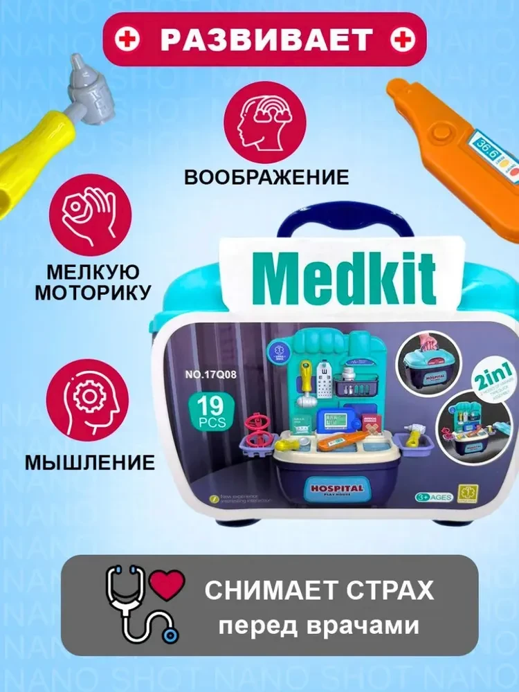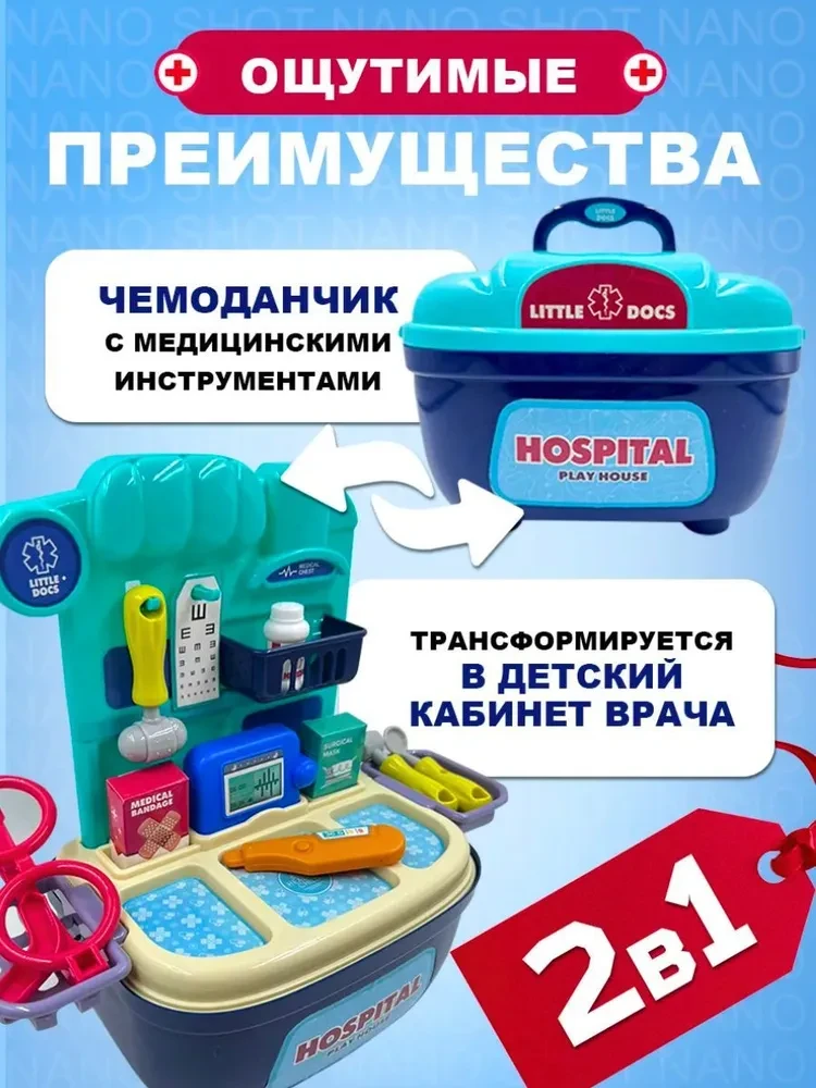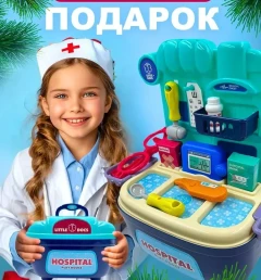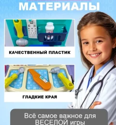 Подарите вашему ребенку возможность стать настоящим врачом с помощью уникального детского набора доктора! Этот игровой набор не только развлекает, но и способствует развитию воображения, позволяя детям погрузиться в увлекательный мир медицинских профессий. Изготовленный из качественного пластика, он безопасен для детей и идеально подходит как для мальчиков, так и для девочек. Набор доктора для девочки и мальчика включает в себя все необходимые инструменты, которые помогут вашему ребенку почувствовать себя настоящим специалистом. К тому же, игрушка трансформируется в кабинет врача, что делает ее еще более интересной и многофункциональной. Теперь ваш малыш сможет не только лечить игрушечных пациентов, но и организовывать собственный медицинский кабинет в любое время и в любом месте. Компактное хранение набора в виде чемоданчика позволяет легко переносить его и брать с собой в поездки или на прогулки. Это делает его идеальным выбором для активных детей, которые любят играть на свежем воздухе или в компании друзей. Набор доктора детский станет прекрасным подарком на Новый год или любой другой праздник. Он идеально подходит для детей от 3 лет и станет отличным сюрпризом для брата или сестры. Ролевая игра с использованием этого набора способствует изучению профессии врача, развивает социальные навыки и учит заботиться о других. Ваш ребенок сможет не только развлекаться, но и учиться, что делает этот набор настоящей находкой для родителей, стремящихся к гармоничному развитию своих детей. Не упустите возможность подарить вашему ребенку не просто игрушку, а целый мир возможностей. Игровой набор доктора — это не только развлечение, но и шанс на развитие, обучение и творчество. Закажите его прямо сейчас и посмотрите, как ваш малыш с радостью погружается в увлекательный процесс игры!