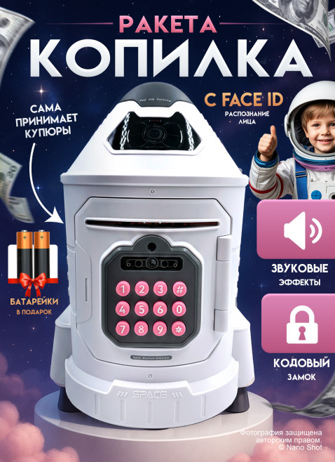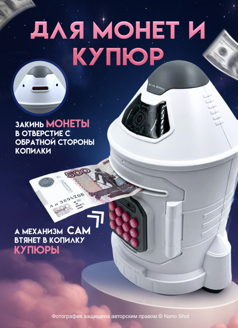 Интерактивная копилка для денег Ракета, розовая Rocket_money_pink