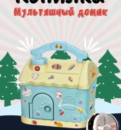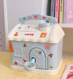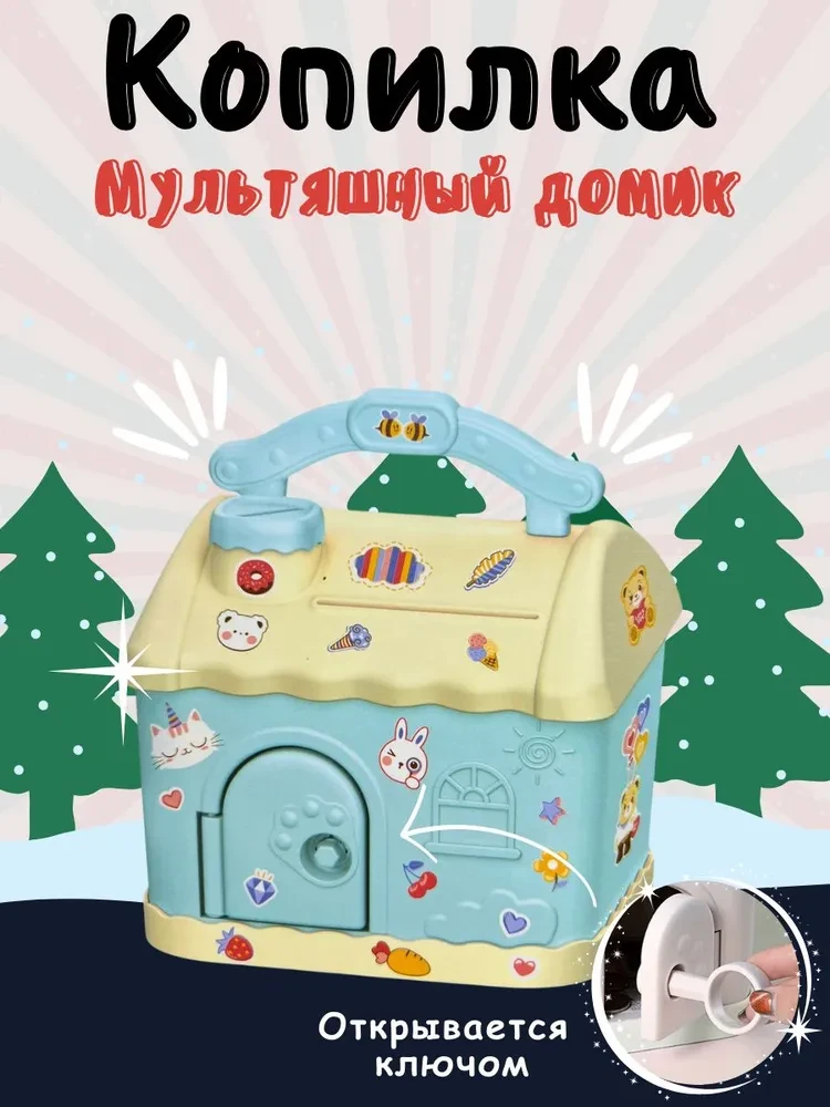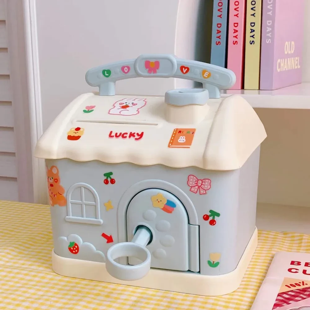 Денежная копилка для монет и купюр Мультяшный домик, голубой