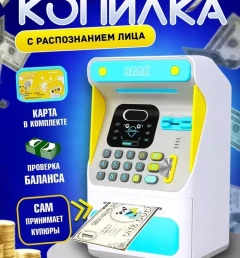 Интерактивная копилка-банкомат с распознаванием лица для купюр и монет, синяя
