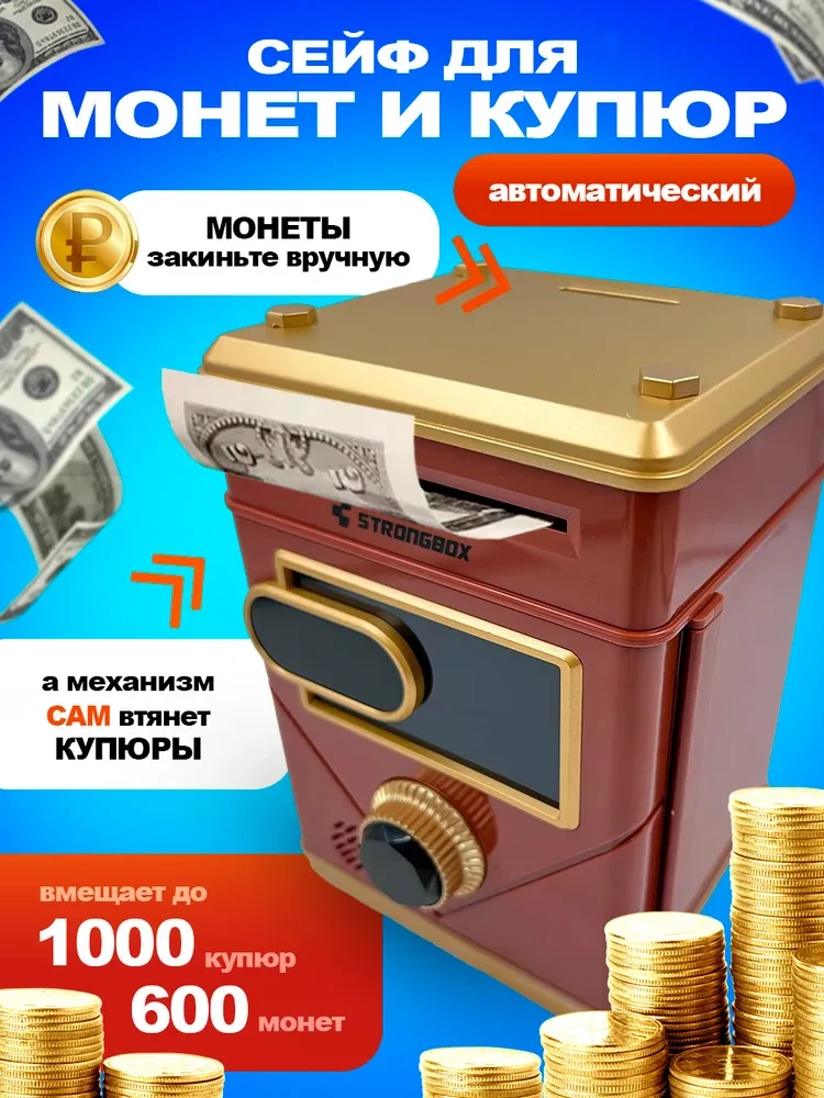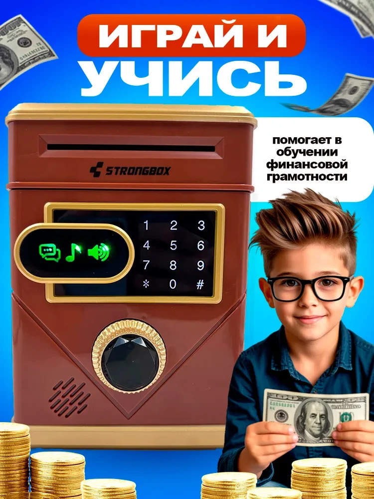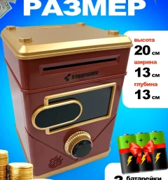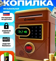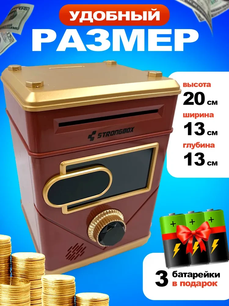 Интерактивная копилка для денег сейф-банкомат, бронза