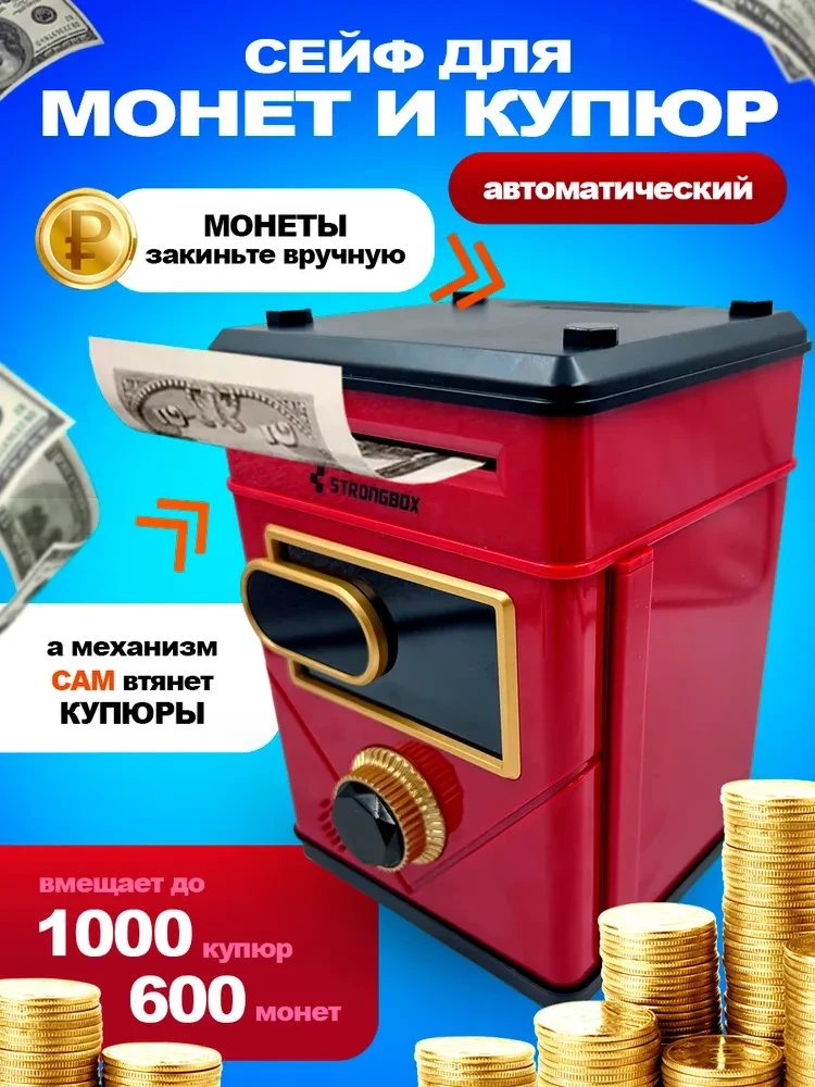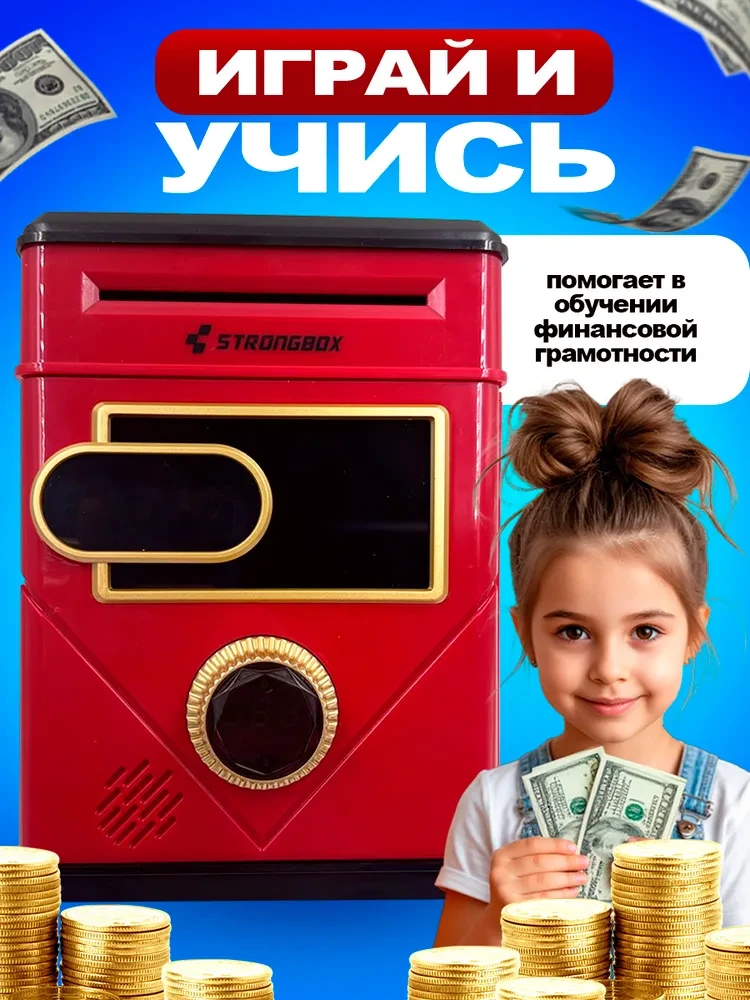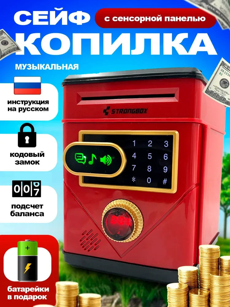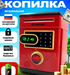 Интерактивная копилка для денег сейф-банкомат, красная