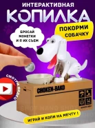 Интерактивная копилка-воришка для монет собака с миской, белая