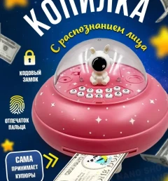 Интерактивная музыкальная копилка для денег Летающая тарелка/НЛО, розовая