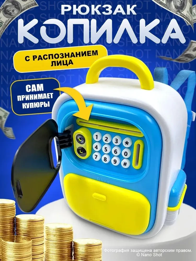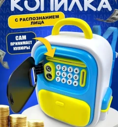 Копилка для денег с кодовым замком голубая, Школьный рюкзак