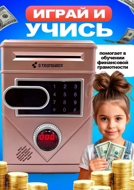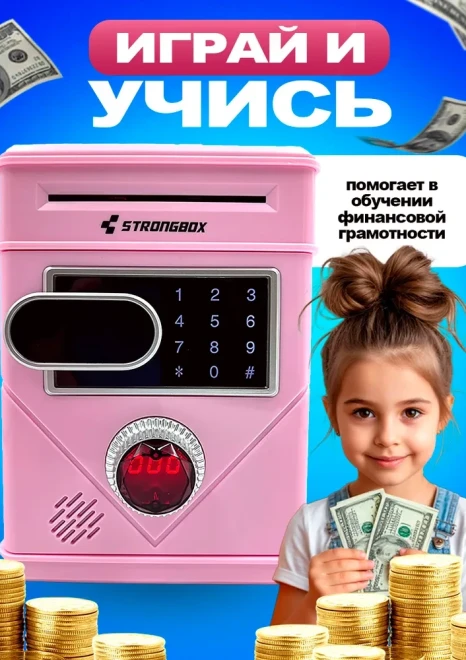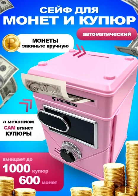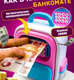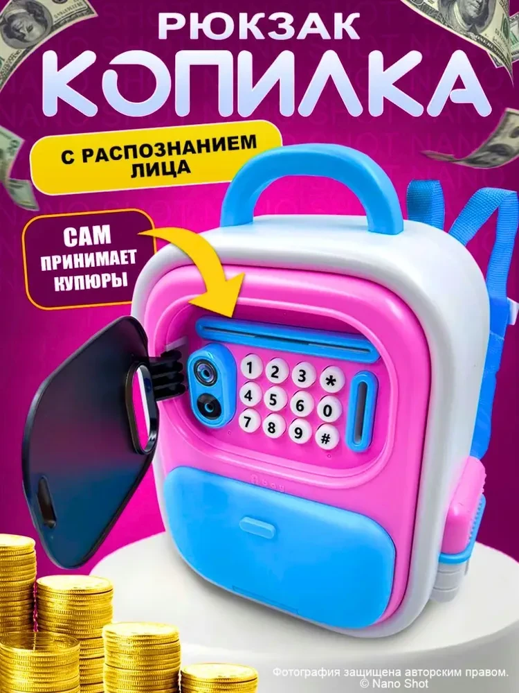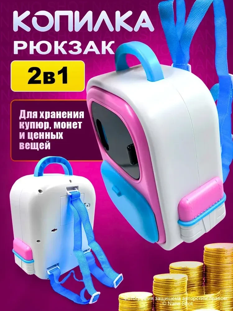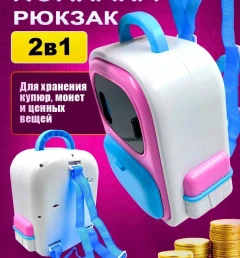 Копилка для денег с кодовым замком розовая, Школьный рюкзак