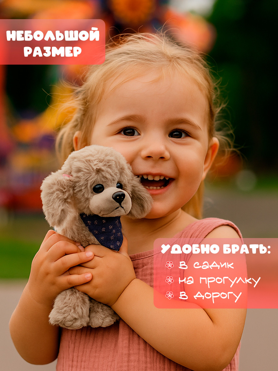 Мягкая плюшевая игрушка в виде собаки коричневого цвета высотой 20 см станет идеальным подарком для любого возраста. Эта пушистая собачка с реалистичными деталями и милыми лапками принесет радость и уют в ваш дом. Изготовленная из высококачественных материалов, она обладает антистрессовыми свойствами - лапки с шариками, что делает ее отличным выбором для снятия напряжения после долгого дня. Игрушка устойчива и сохраняет форму даже после многочисленных обнимашек, что делает ее долговечной и надежной. Она станет прекрасным подарком на день рождения, Новый год или 8 марта для вашей подруги, дочки или внучки. Эта собака не только порадует детей, но и станет стильным элементом интерьера, добавляя уют и тепло в любую комнату. Плюшевая собачка способствует улучшению качества сна, создавая атмосферу комфорта и безопасности. Ее компактный размер позволяет брать ее с собой в поездки, чтобы всегда иметь под рукой источник радости и спокойствия. Эта игрушка станет верным спутником для вашего ребенка, помогая развивать воображение и эмоциональную привязанность. Игрушка в трех цветах. Подарите своим близким радость и уют с этой классной плюшевой собакой, которая станет неотъемлемой частью их повседневной жизни. Она идеально подходит для детей от трех лет и старше, обеспечивая безопасность и комфорт в использовании. Выбирая эту игрушку, вы дарите не просто вещь, а источник положительных эмоций и теплых воспоминаний.