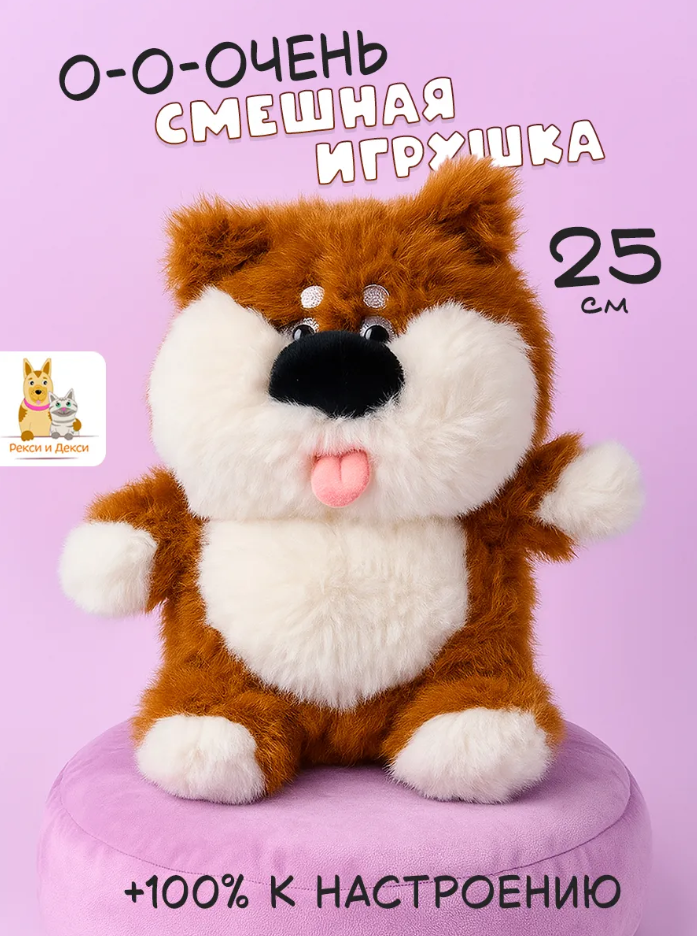 Мягкая плюшевая смешная игрушка собака с языком 25 см