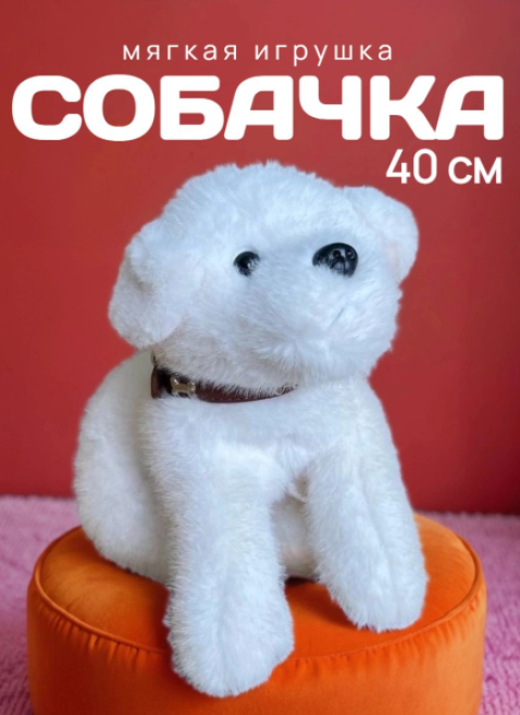 Мягкая игрушка собака в ошейнике 40 см, белая Nice-dog40-white