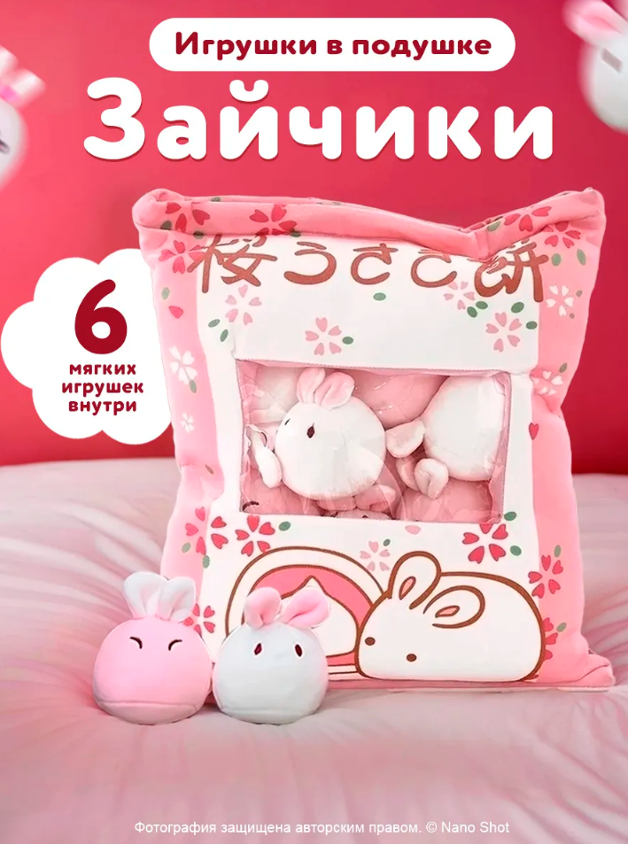 Игрушка-подушка — это идеальное сочетание комфорта и развлечения для маленьких детей. Внутри подушки находятся мягкие игрушки, которые можно легко достать, превращая обычную подушку в увлекательную игру. Эти милые игрушки, выполненные в виде зайчиков и мишек, станут отличными друзьями для мальчиков и девочек.