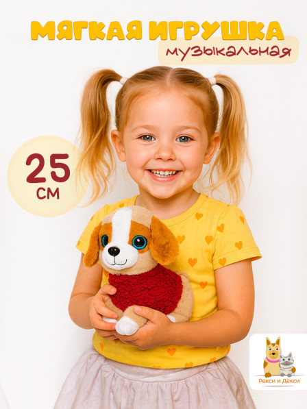 Плюшевая музыкальная игрушка в форме собаки 25 см станет отличным подарком для ребенка и взрослого. Изготовленная из высококачественных материалов, она наполнена синтепухом, что обеспечивает мягкость и комфорт при обнимашках. Эта игрушка станет не только источником радости, но и прекрасным сюрпризом на день рождения, Новый год или 8 марта.