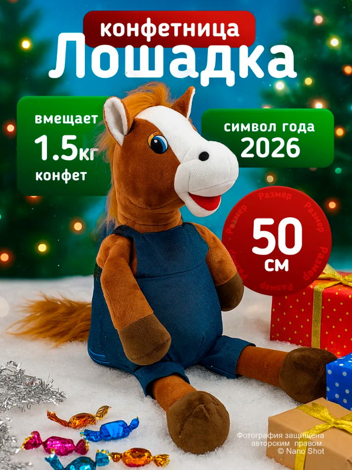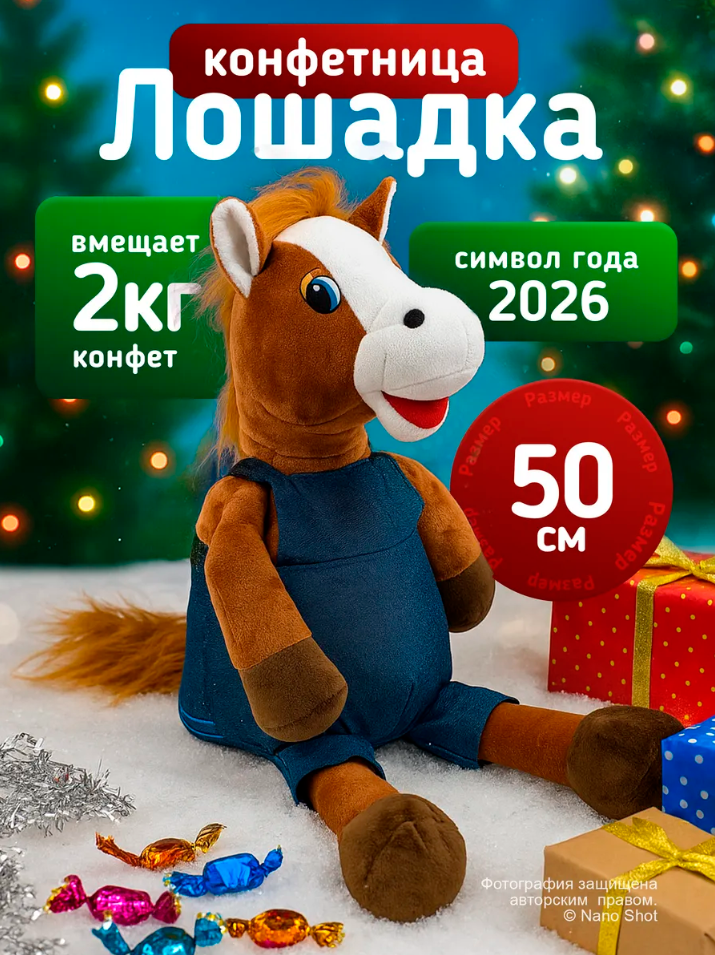Эта мягкая игрушка станет отличным подарком на Новый год, особенно для девочек и мальчиков. Она будет радовать детей в течение всего года, оставаясь актуальной и в 2026 году. Лошадка-конфетница — это не просто игрушка, а символ нового года, который принесет удачу и счастье в дом.